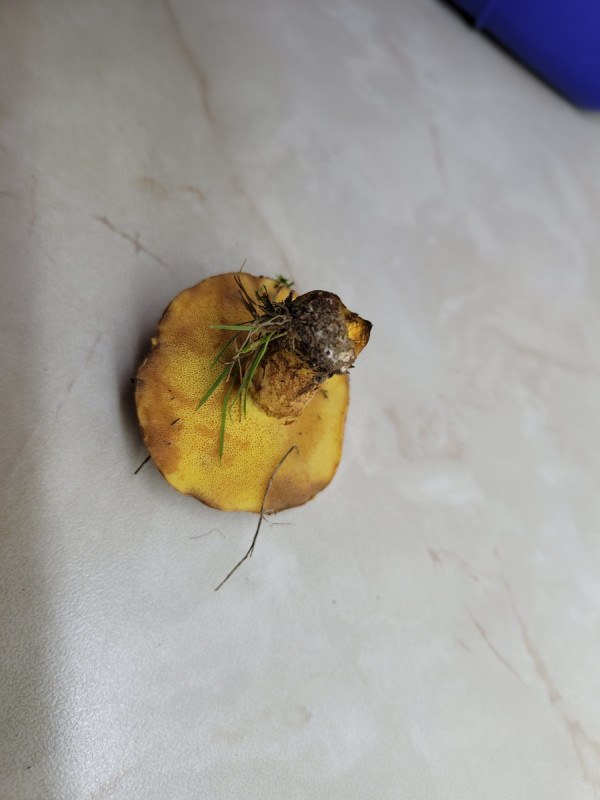 Ich tippe auf Goldröhrling. Eventuell noch ein Ringloser Butterpilz. Aber um ehrlich zu sein weiß ich es nicht wirklich.