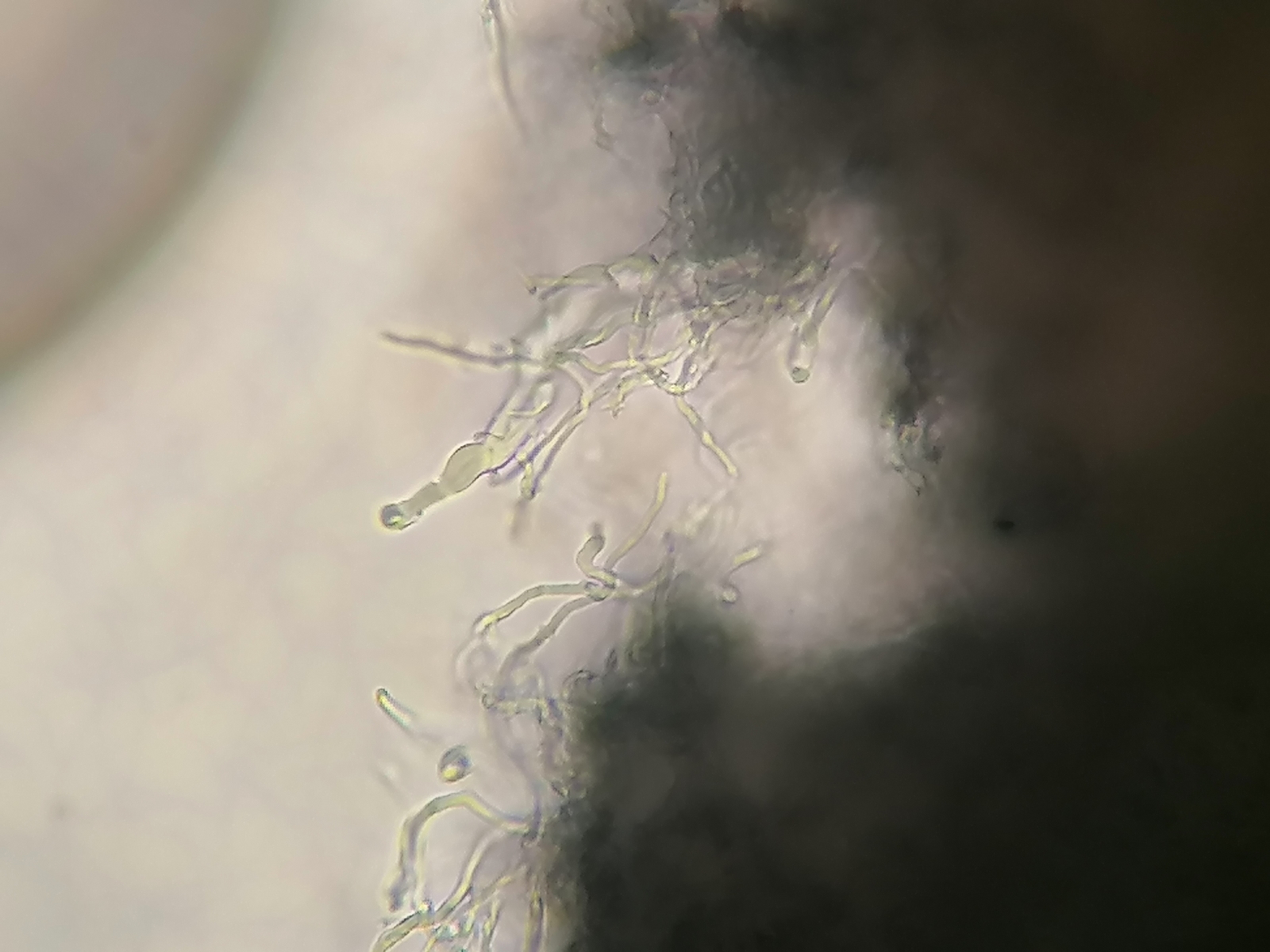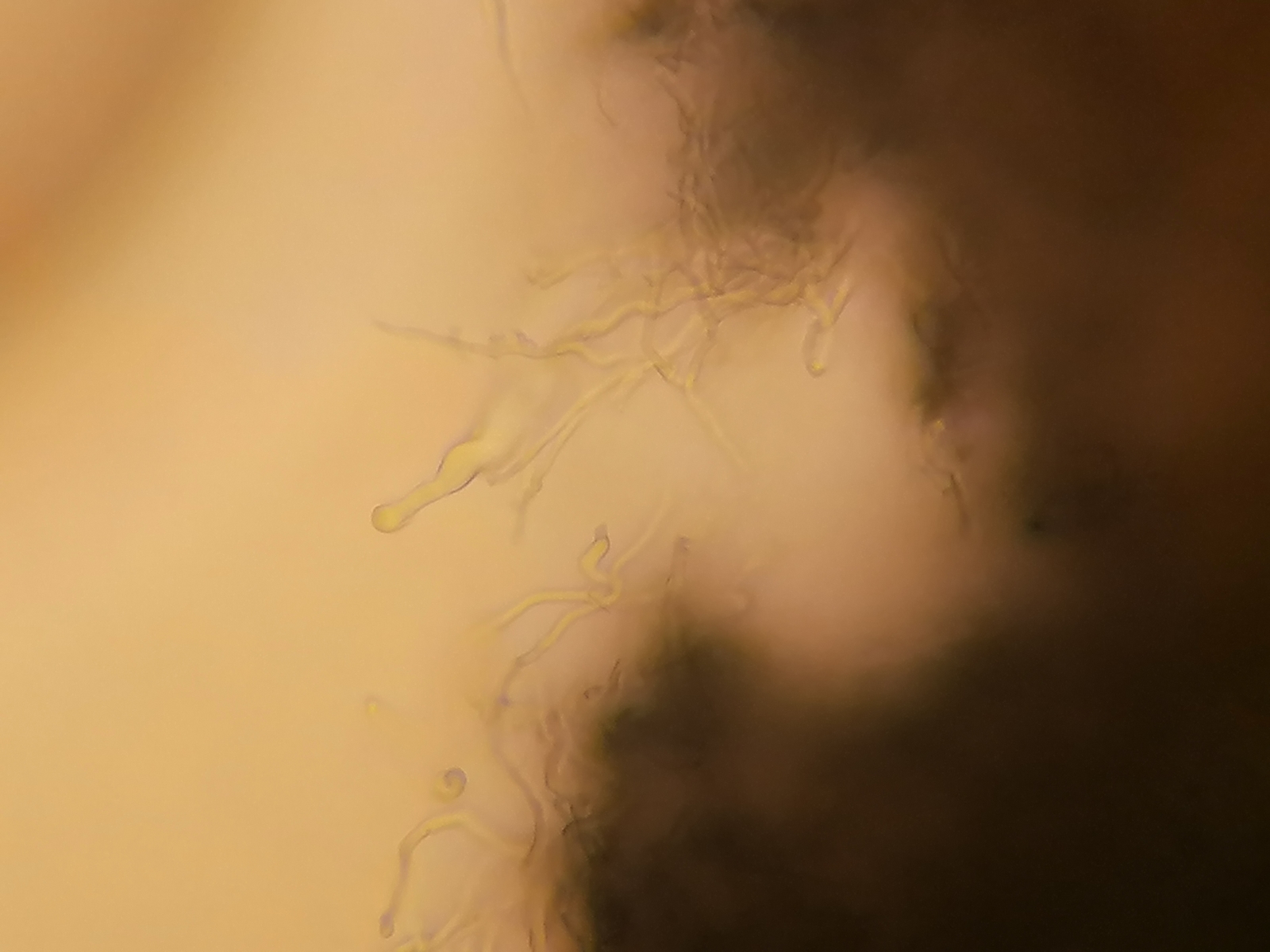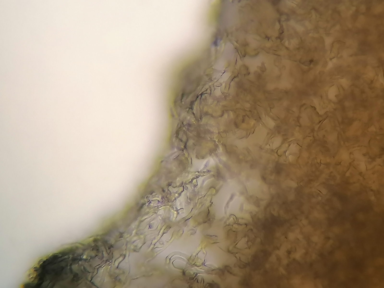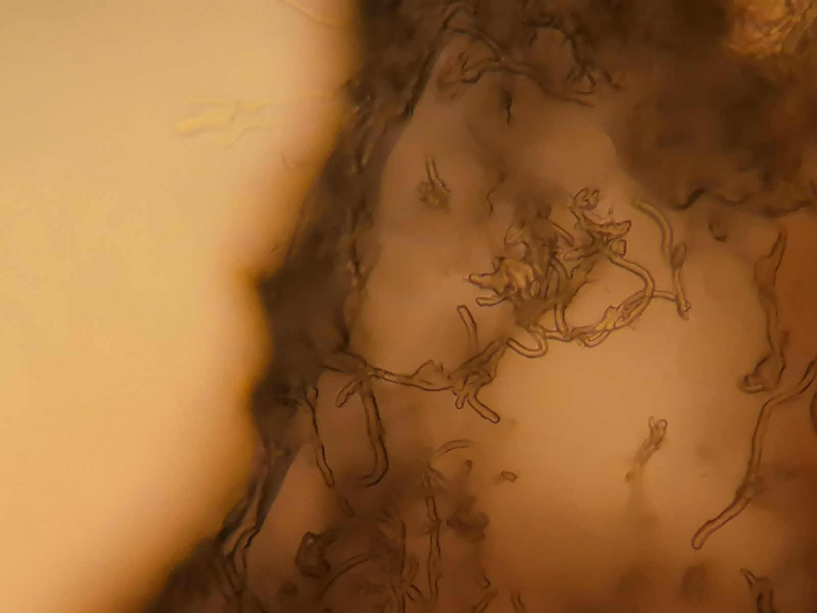• Hier noch meine Mikrobilder, ich habe versucht, feinste Scheibchen vom Sklerotium abzuschneiden.