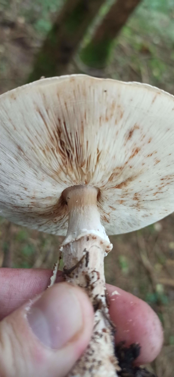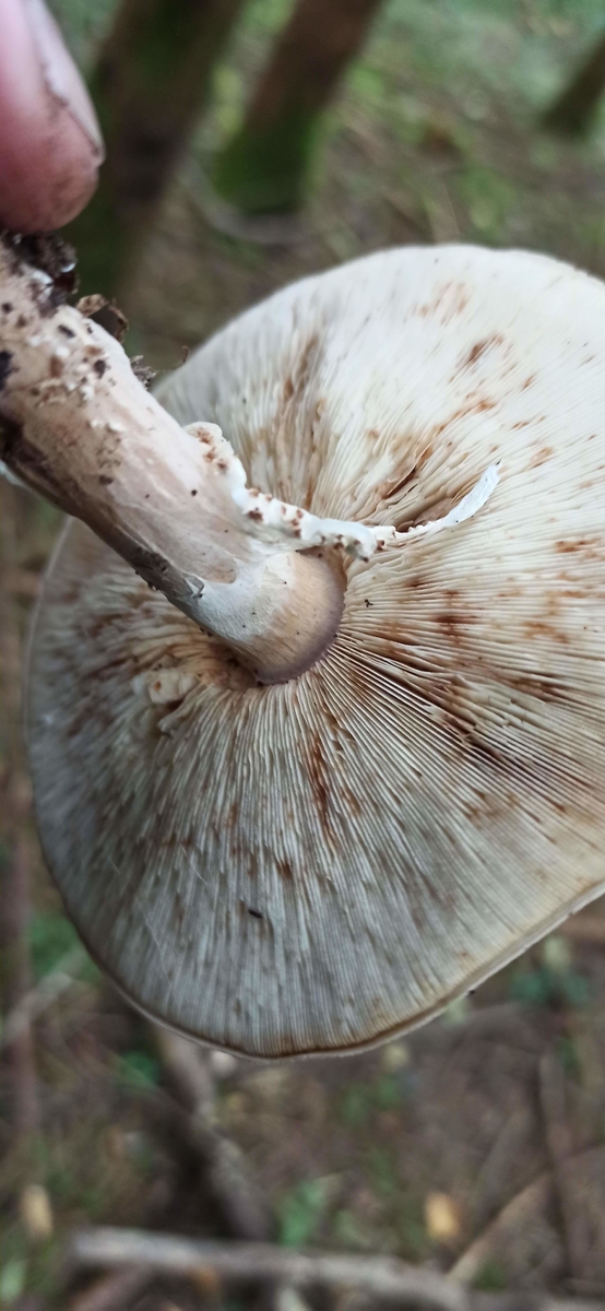 1. Stiel - Ring - Lamellen = Echinoderma ( adspersum Gruppe ) Hut ungewöhnlich , glaube zu alt abgewaschen