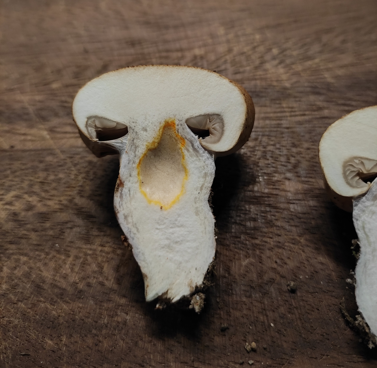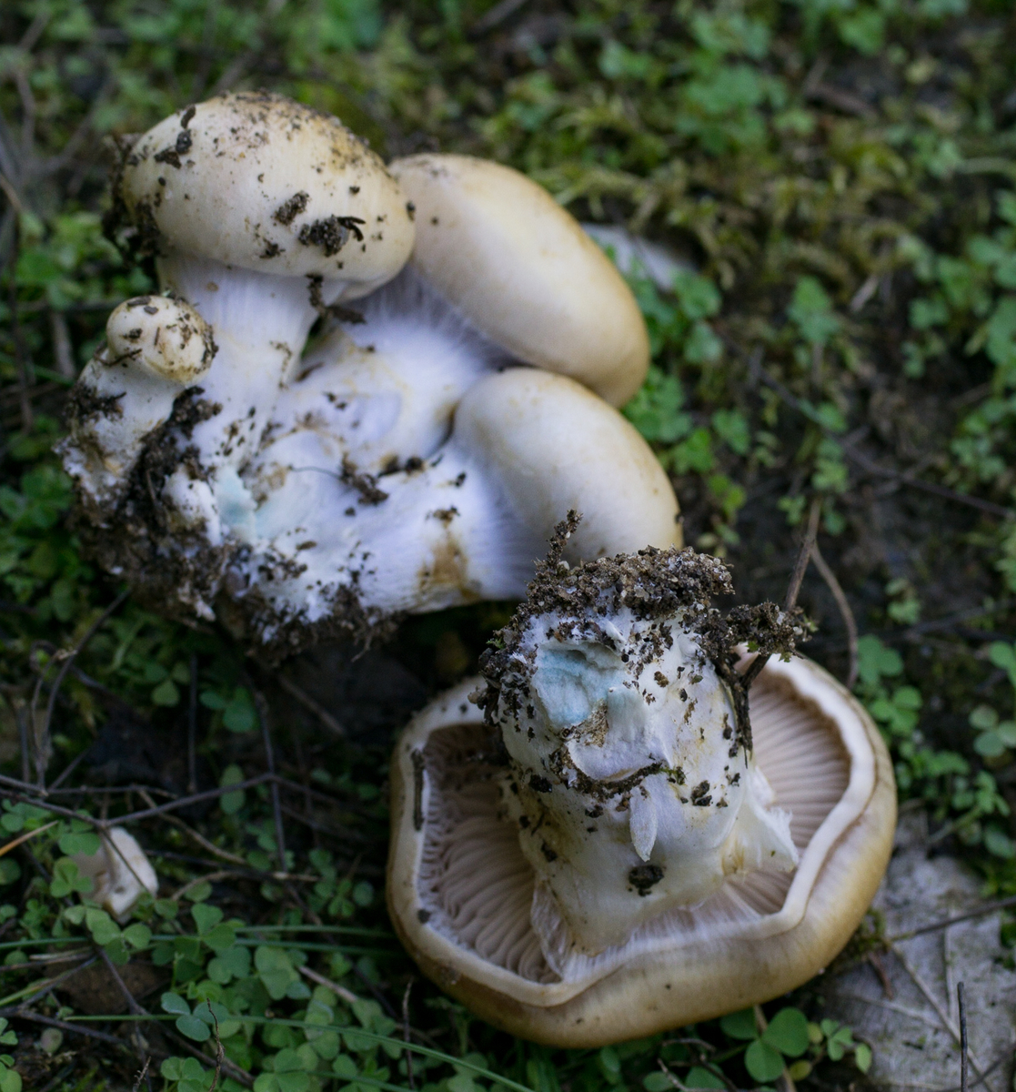 Stielbasis leicht blauend bei Verletzung. Lamellen jung weiß/creme.