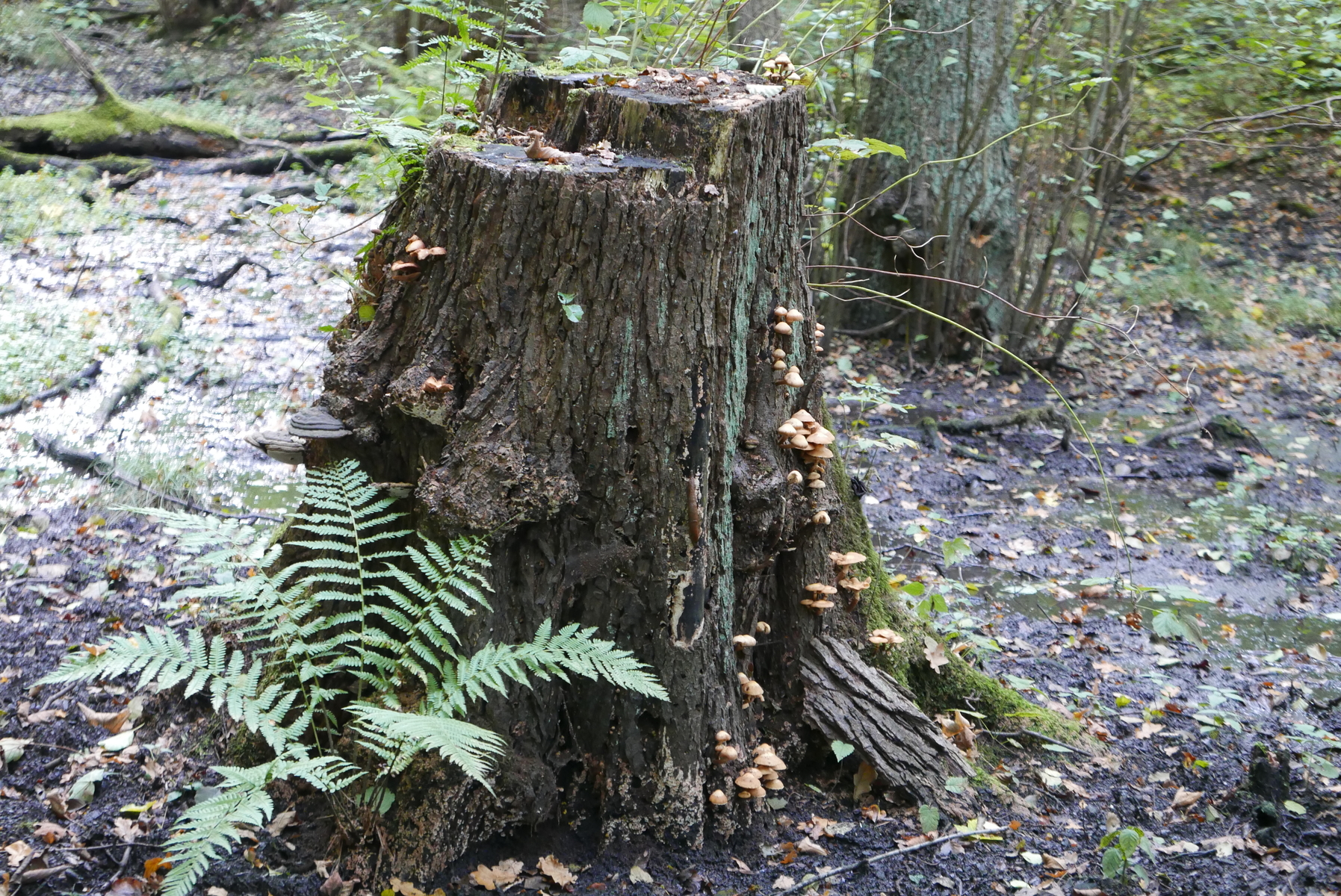 05. Diesen Stiel-Porling fand ich sogar fotografierenswert, obwohl selbst schon morsch, wie das Holz, auf dem er wuchs