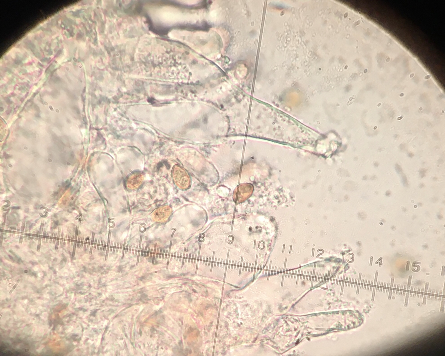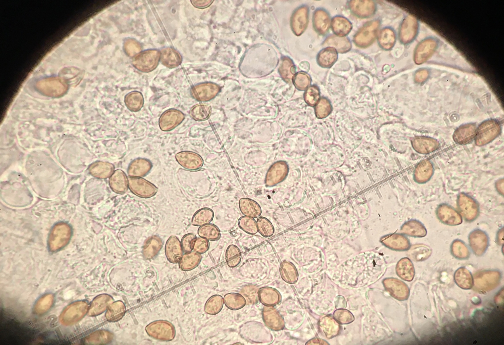 Sporen: 9-10,5 x 5-7, eine war 6 x 5