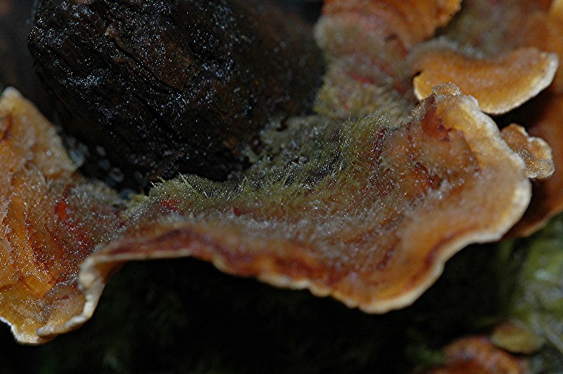 ich habe natürlich, ald ich heute nochmals am Steinbruch war, auch diesen pilz nochmals unter die Lupe genommen, um zu klären, ob es sich um S. hirsutum oder S. subtomentosum handelt. Nun habe ich mich entschieden. Wenn ich die Literatur anschaue, so sit hirsutum in der Hutgröße deutlich kleiner, auf dem nachfolgenden Beispiel sieht man das, was man wohl mit striegelig meint und ich habe den Pilz uf der Unterseite so berührt, daß irgendeine Verfärbung hätte stattfinden müssen, wäre es subtomentosum und jetzt sind die Dinger zu Hause schon relativ vertrocknet und da verfärbt sich die Unterseite des Hutes ziemlich ins grau, wobei ich nicht weiß, wie die Farbe in vertrocknetem Zustand von S. subtomentosum ist.