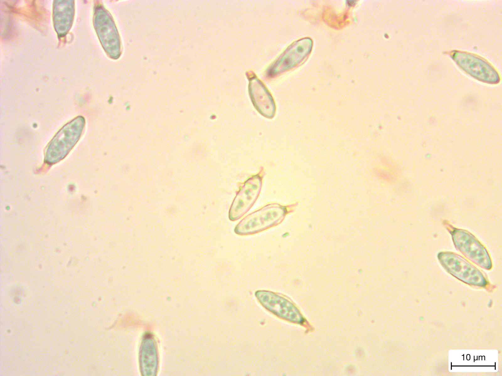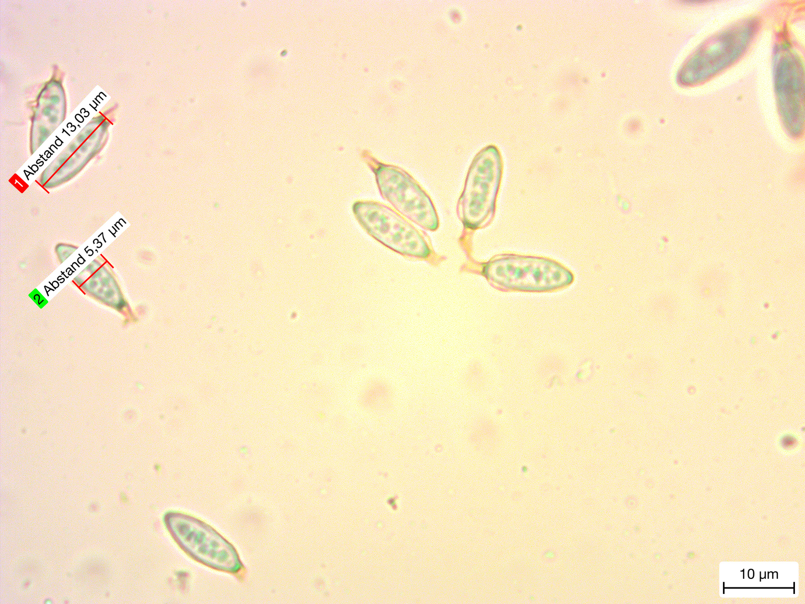 Sporen 5-5,5µ x 12-13,5µ ohne Apiculus gemessen