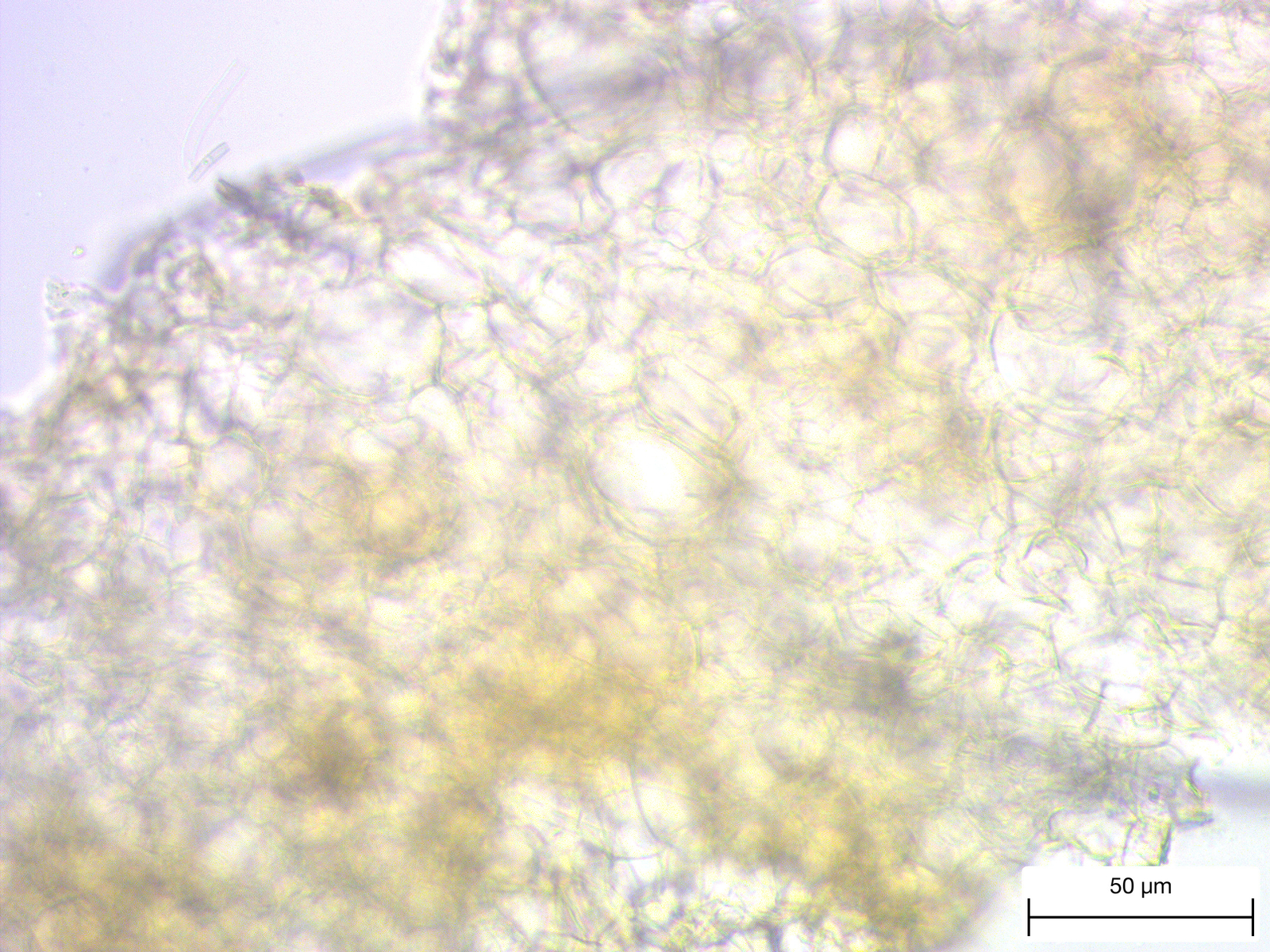 So sieht sie aus. Die Zellen sind schon ein bisschen rundlich. Ich denke, dass Hysterangium coriaceum besser passt, wegen der Sporennmaße.