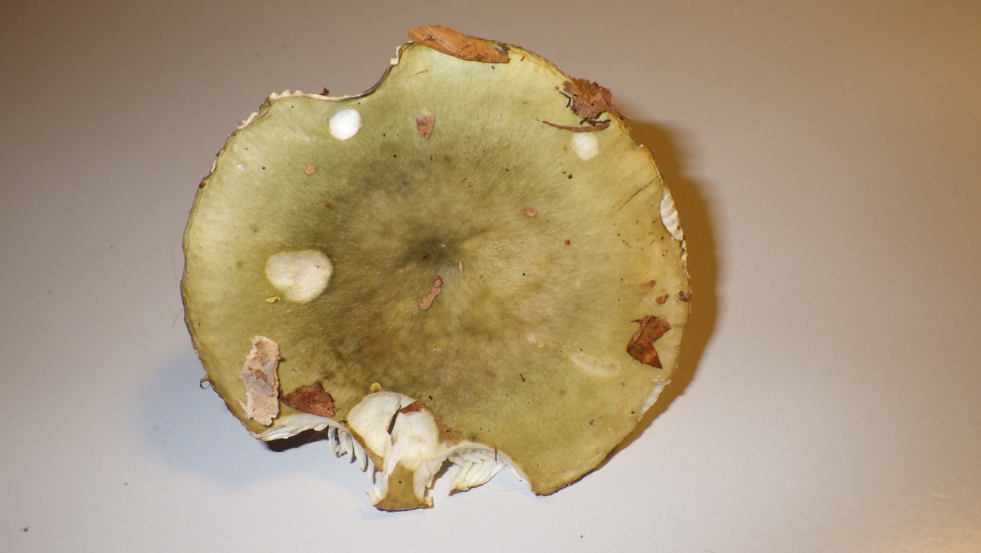 10) Grüner Frauentäubling Russula cyanoxantha, weisse Lamellen mit mildem Geschmack und nicht brüchig, weisser Stil