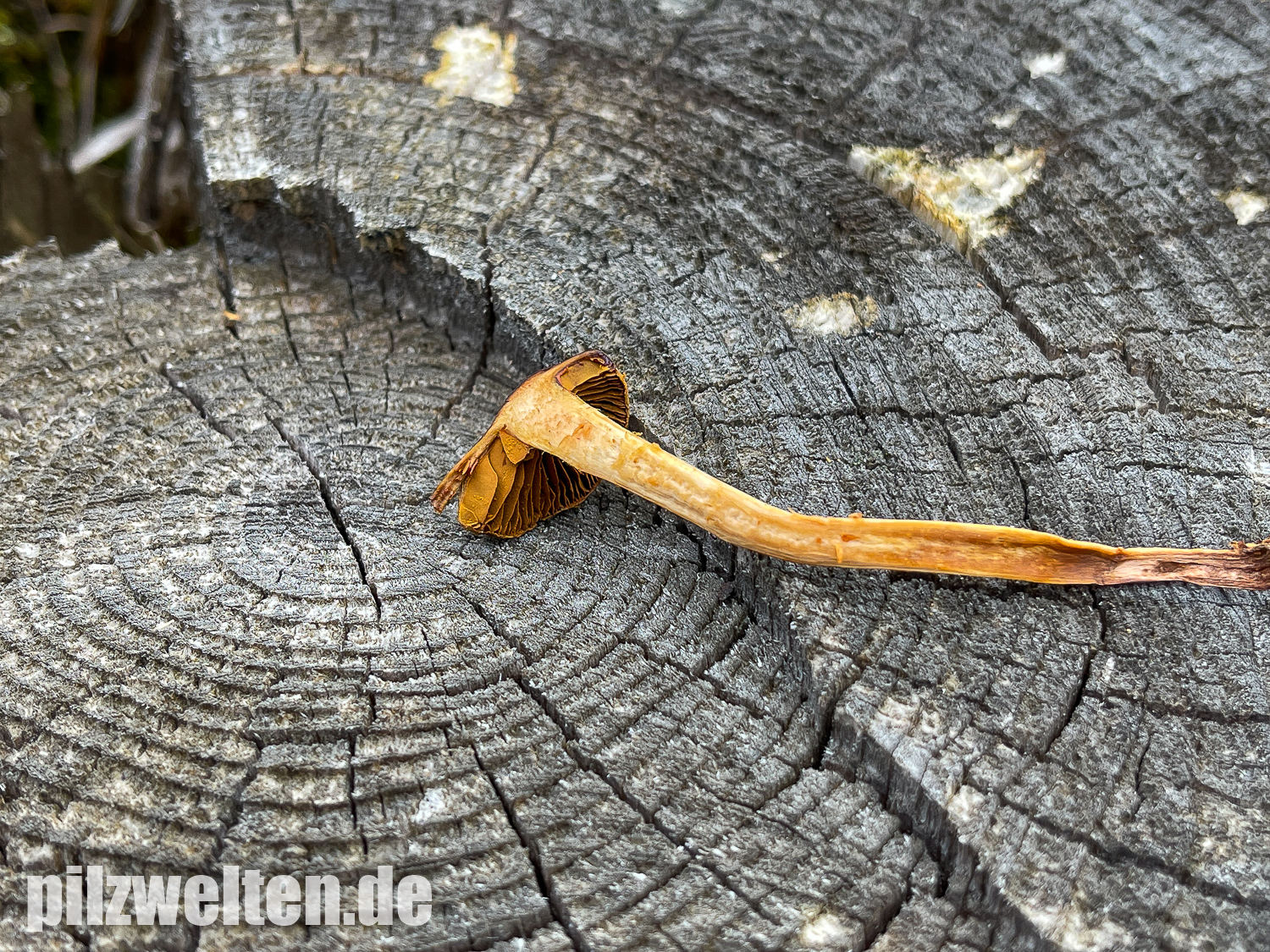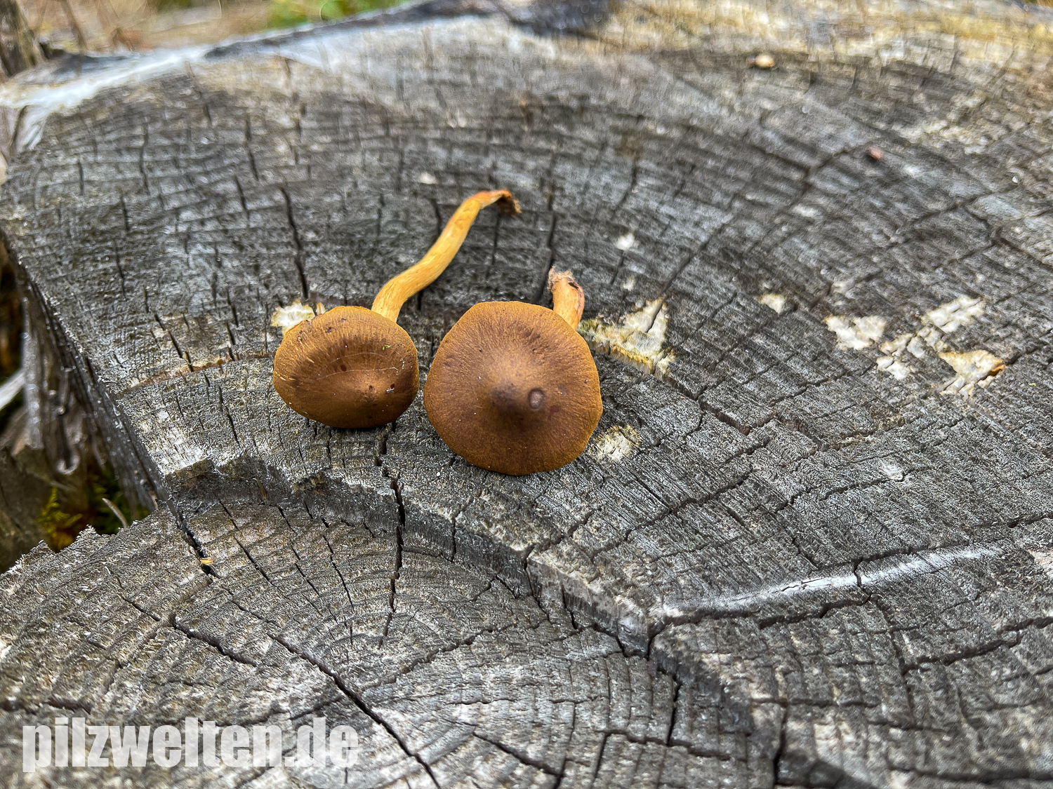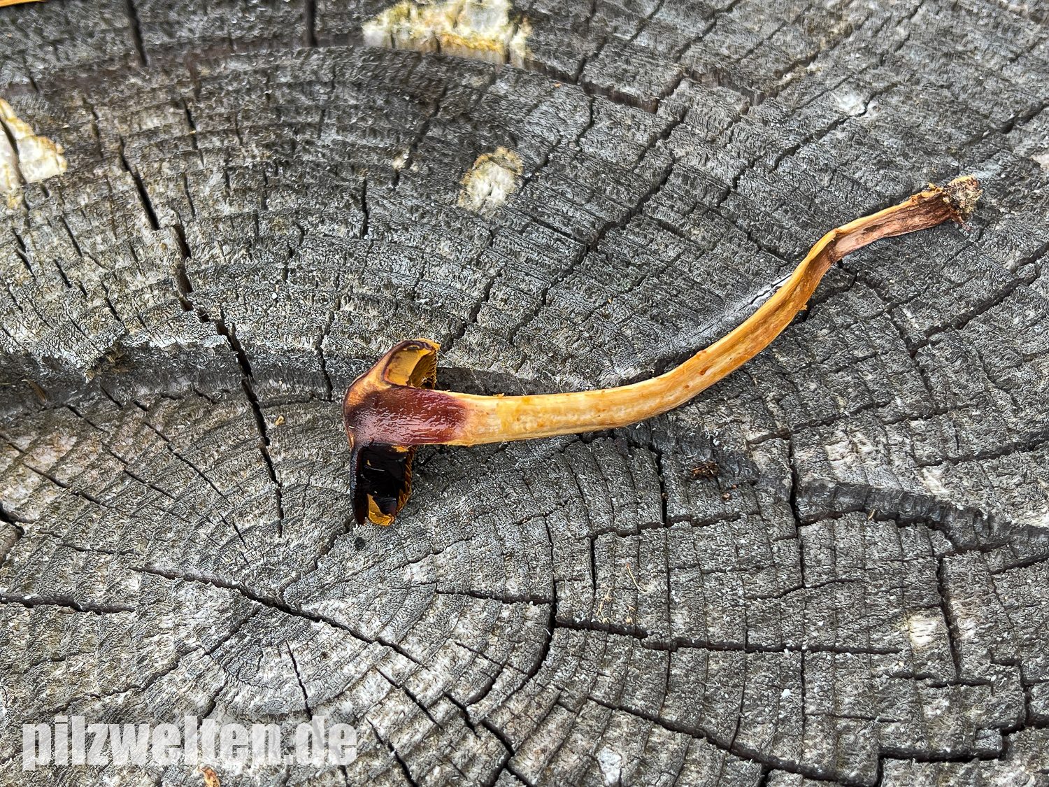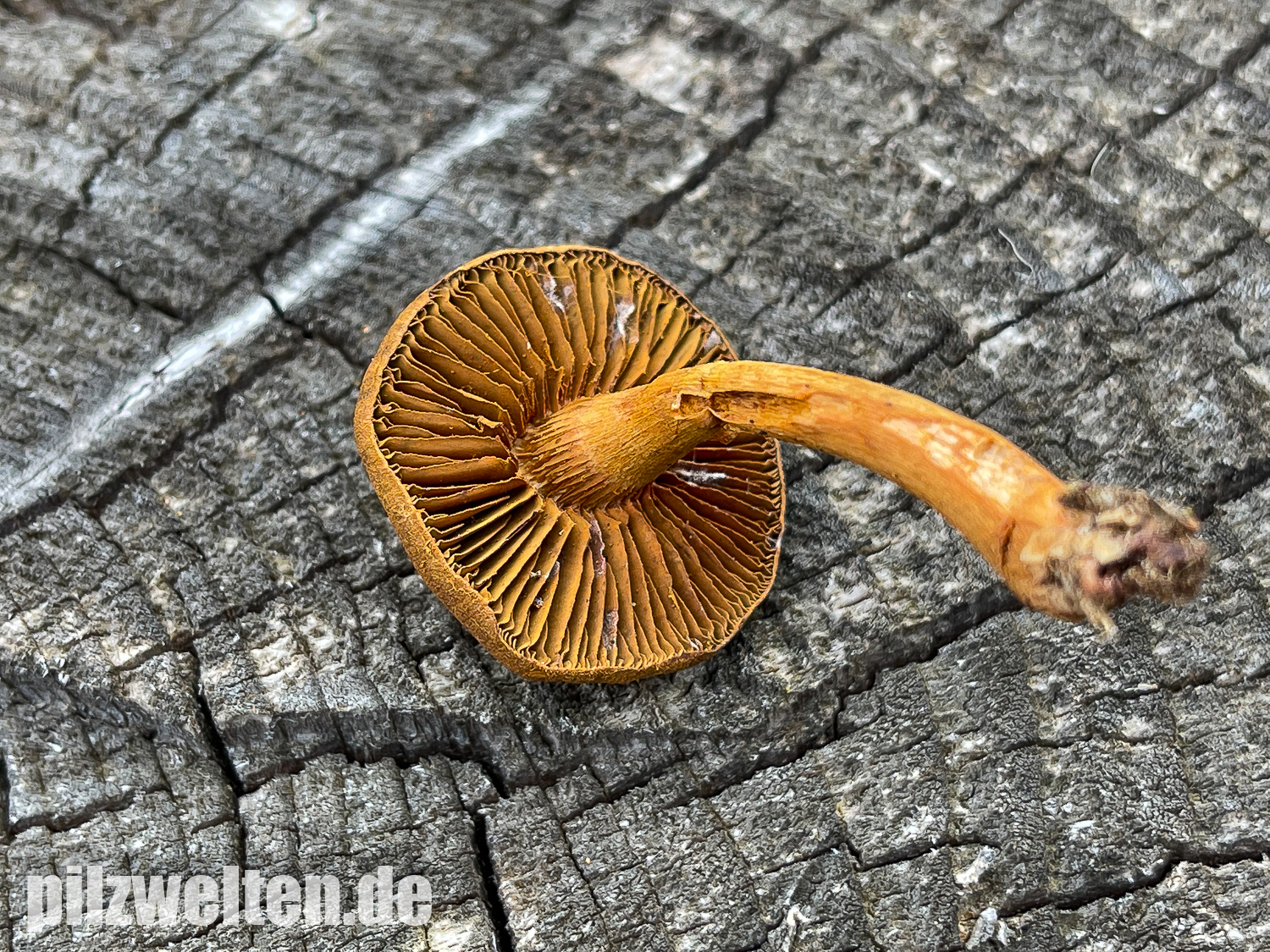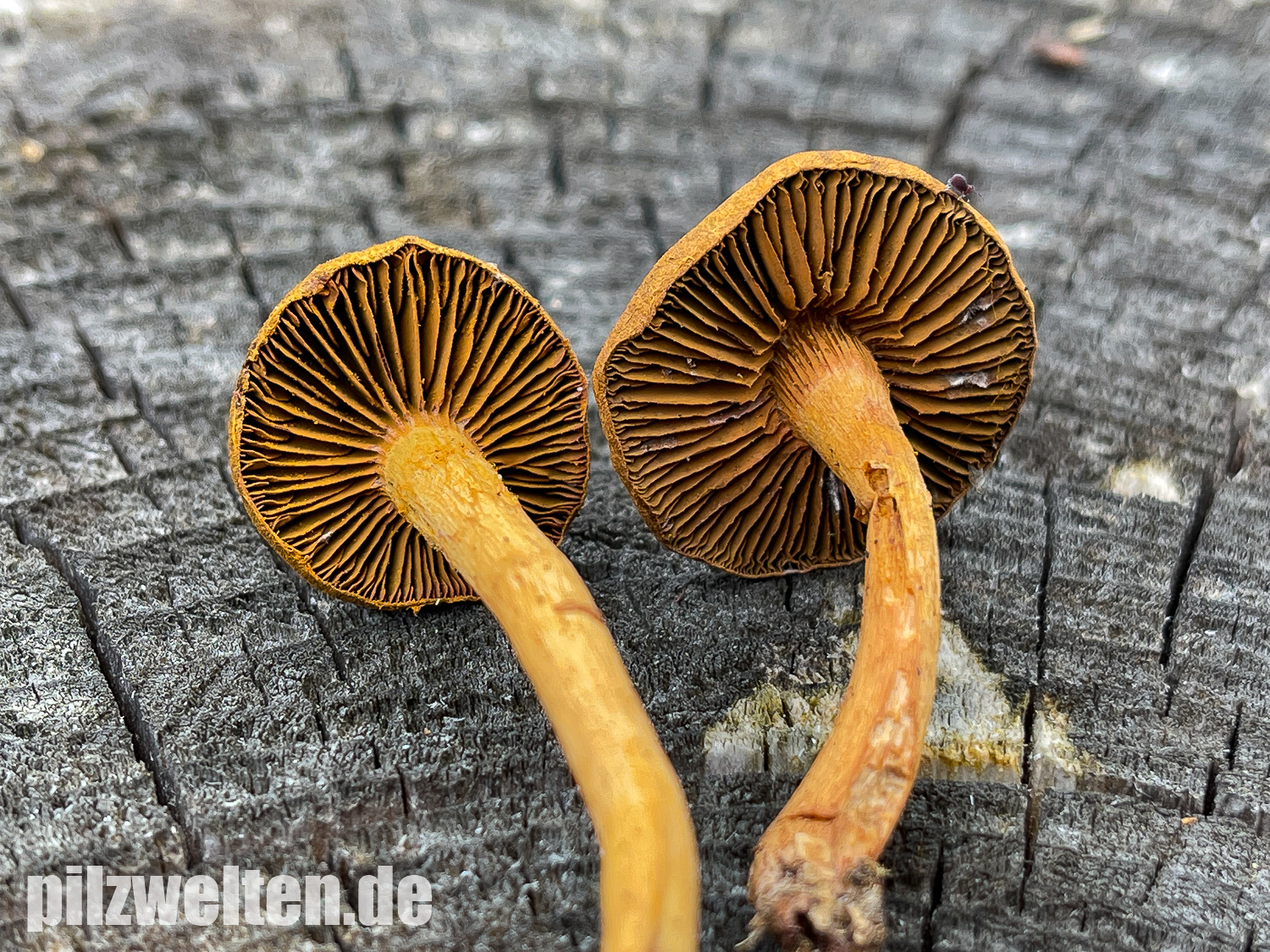 den folgenden Hautkopf konnten wir heute im Mischwald finden. Die schwarze Farbveränderung mit Kalilauge und die Farben insgesamt könnten aus unserer Sicht zu Cortinarius cinnamomeus passen, aber wirklich zu 1.000% sicher sind wir uns nicht, alleine schon weil wir die Art vorher noch nie bewusst in der Hand hatten. Sieht hier anhand der Beschreibung jemand etwas, das Cortinarius cinnamomeus ausschließt, was wir vielleicht übersehen haben?