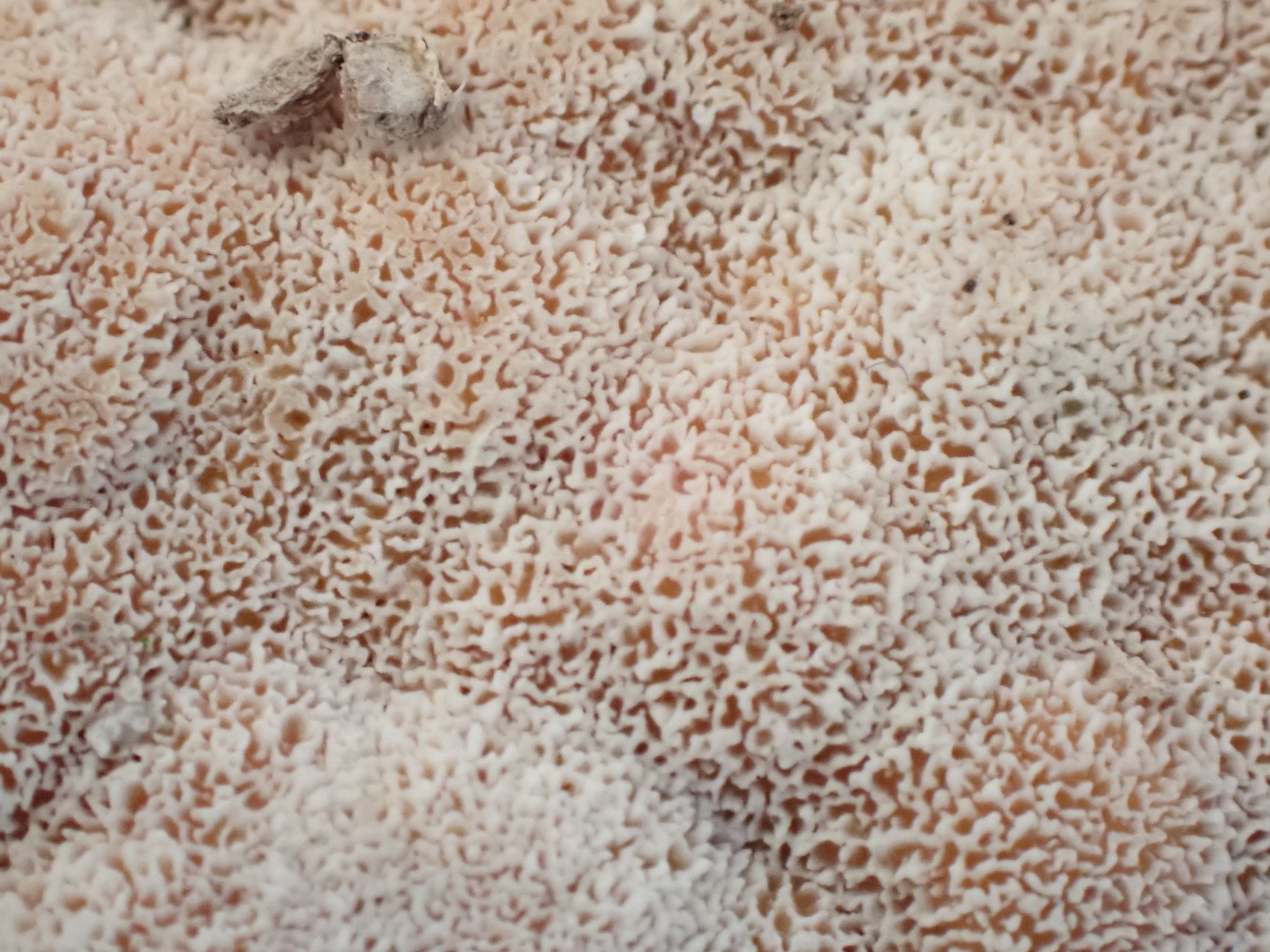 könnte der abgebildete resupinat wachsende Porling Junghuhnia nitida sein?
