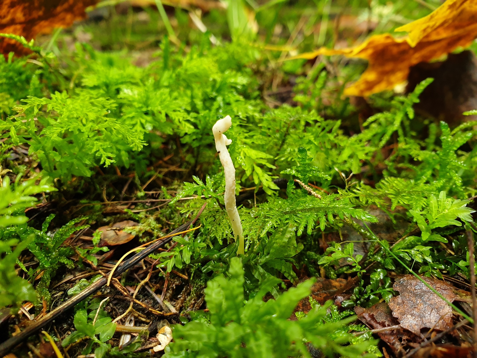 Diese Pilzchen wuchsen zerstreut im Moos zwischen Eiben, Fichten, Ahorn und diversen anderen Arten im Gebüsch.