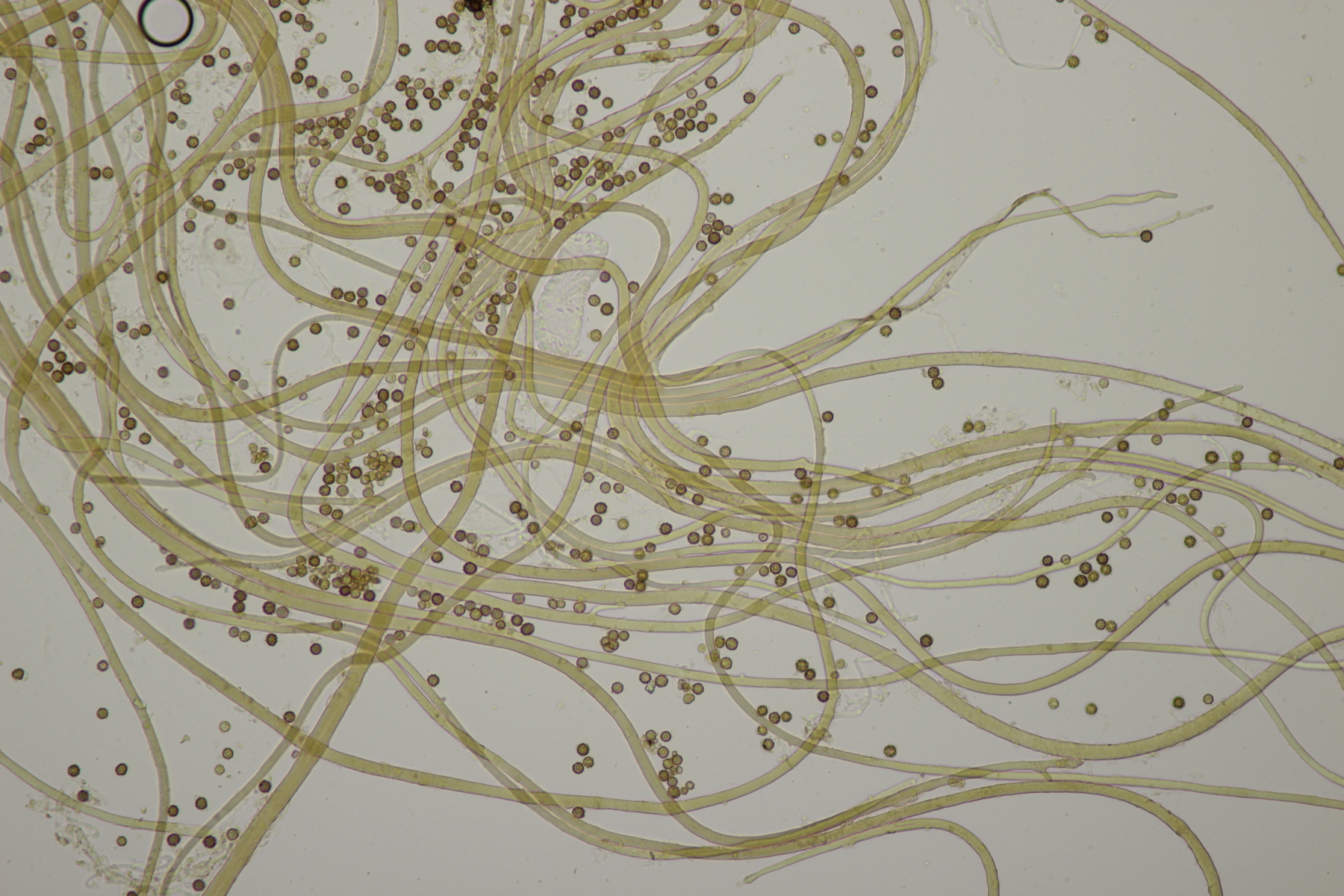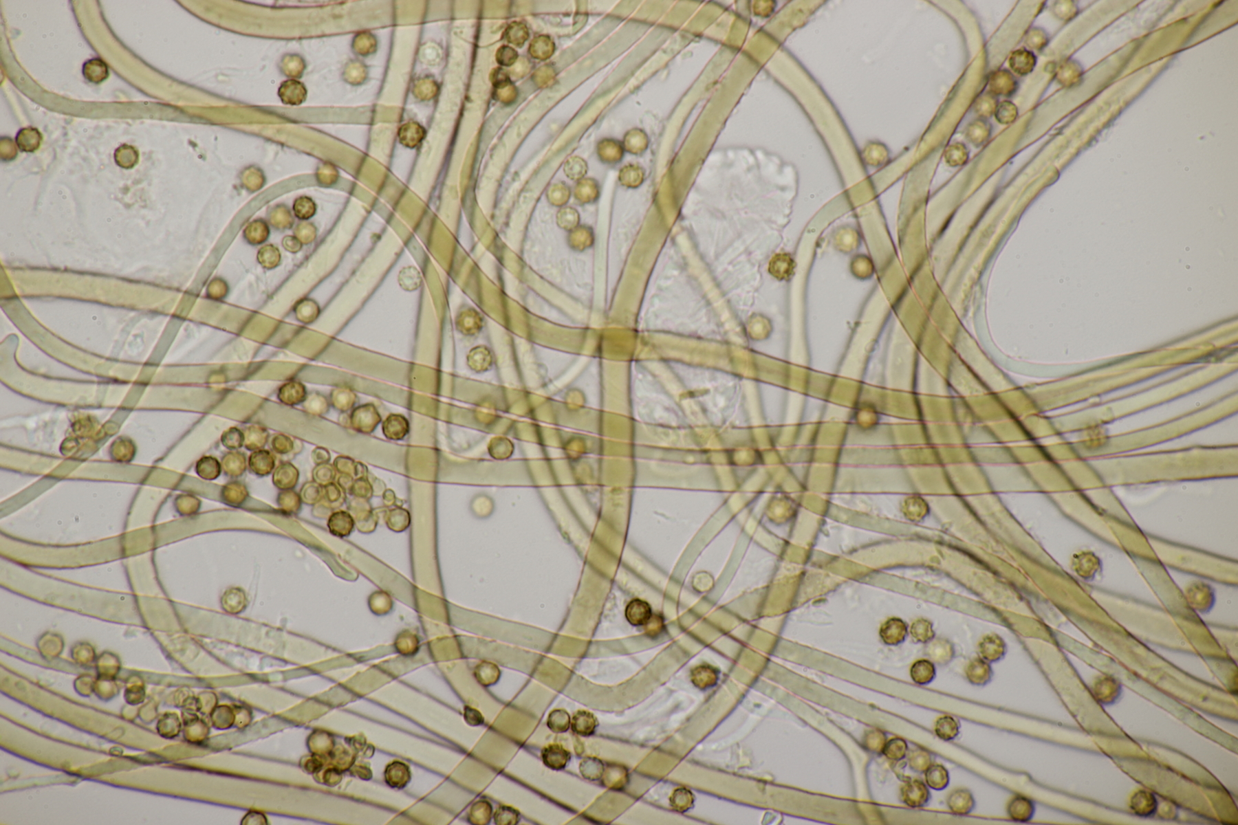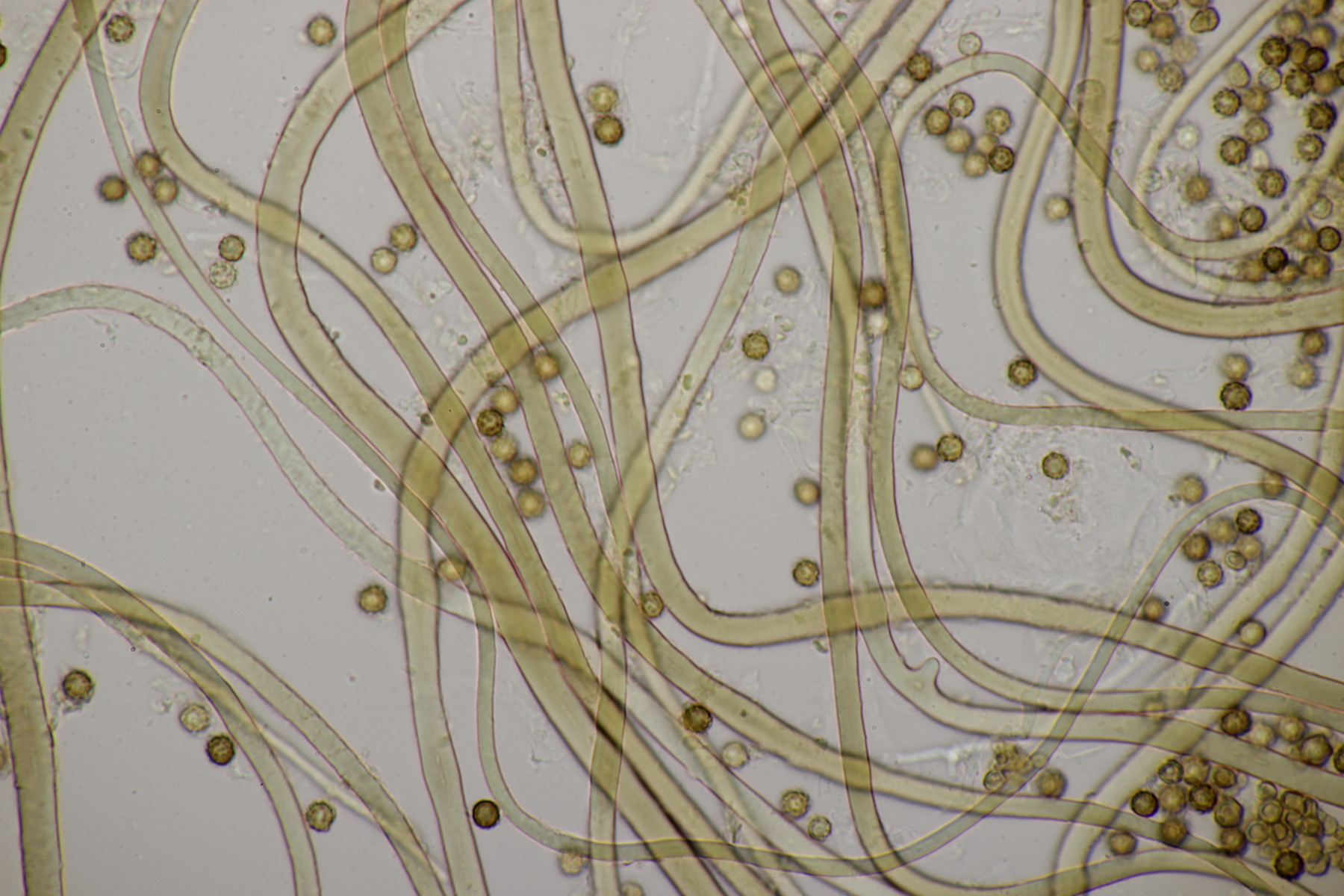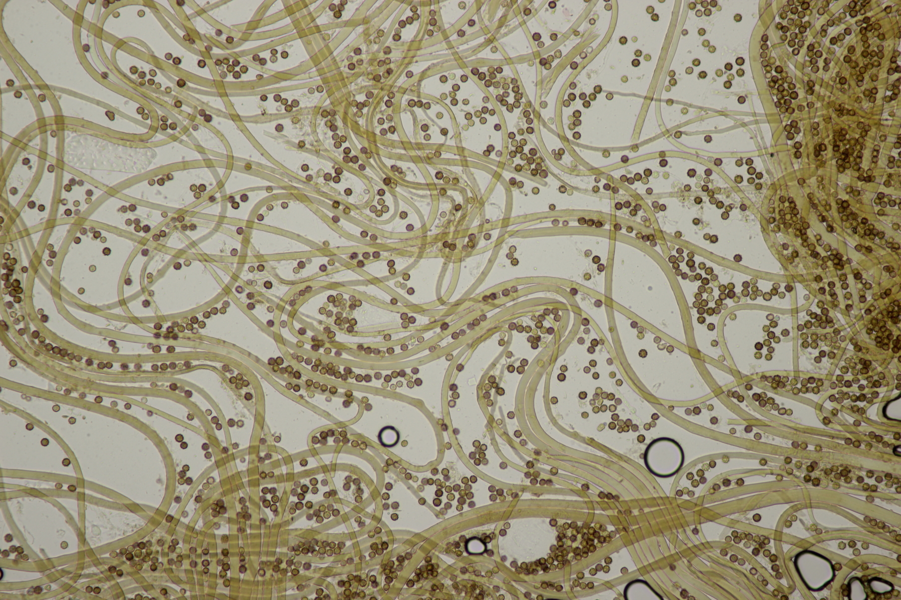 bei der Tour in die Rheinaue Walsum gab es auch einen Erdstern, der nicht zu den hier in der Gegend häufig vorkommenden Arten G. fimbriatum und G. triplex gehört. Fundort war der Übergang von einer Ecke zu einer Wiese, potentiell ein nährstoffreicher Standort mit Stroh und Pflanzenabfällen/Mist. Das Peristom ist kegelförmig, gefurcht. Die Endoperidie ist gestielt, wobei an der Unterseite eine Art Kragen erkennbar ist. Die Sporen messen 4.2-5.0 µm und sind relativ grobwarzig. Das Capillitium ist unseptiert und sehr dickwandig. Damit lande ich dann bei Geastrum striatum. Was sagen die Erdstern-Expert:innen wie lamproderma dazu?