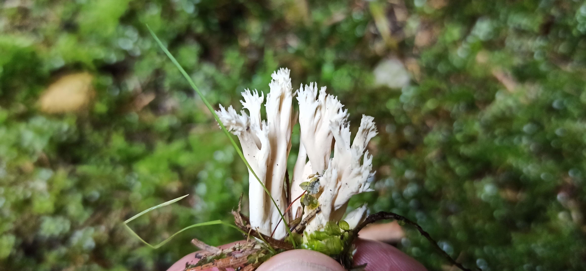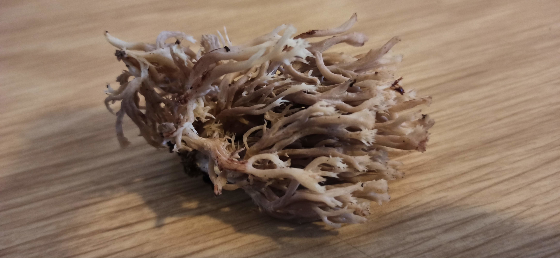 Ist das eine Kamm Koralle?. Fundort zwischen Nadel und Laub, fein gegliederte Spitzen, leicht brechbar,Geruch etwas muffig, Basis ockerlich, 4cm hoch. Laut pilze123 leicht bestimmbar. Wie seht ihr das?