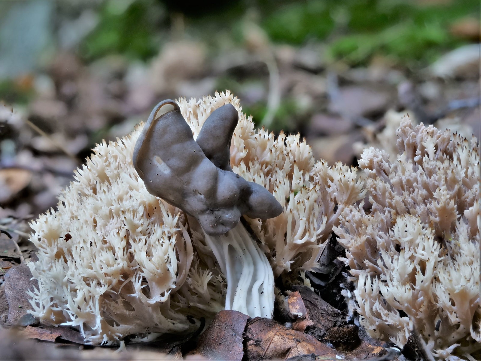 Zwischen Pilzen verschiedener Arten sind ja Antagonismen bekannt und diese auch labormäßig untersucht worden. In diesem Fall wäre es interessant zu wissen gewesen, ob die Myzelien beider Pilze ineinander gewachsen sind oder sich strikt voneinander abgegrenzt haben.