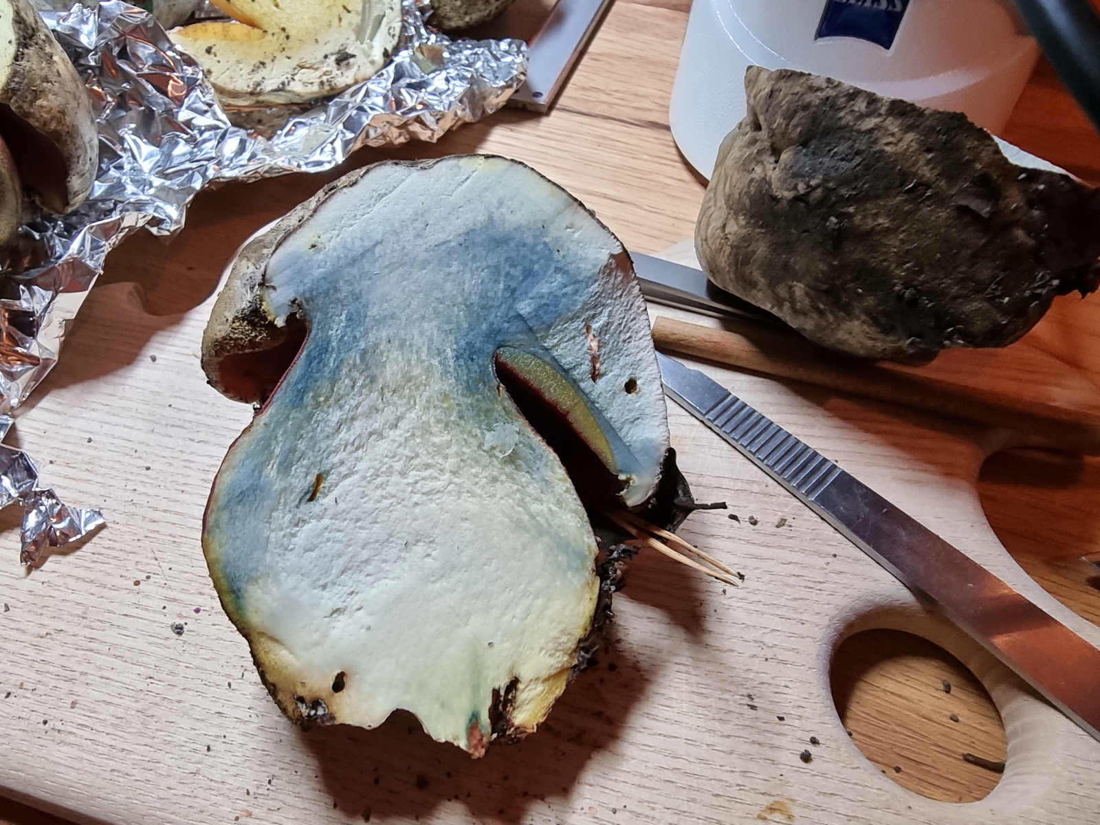 Im Schnitt stark blauend, vor allem im Hut, aber auch in Teilen des Stiels.