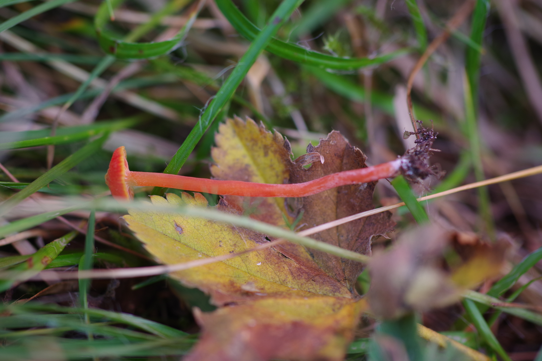 5) ein kleiner Saftling (10 mm Hutdurchmesser), die meisten waren schon ausgetrocknet, aber einer sah noch ganz gut aus