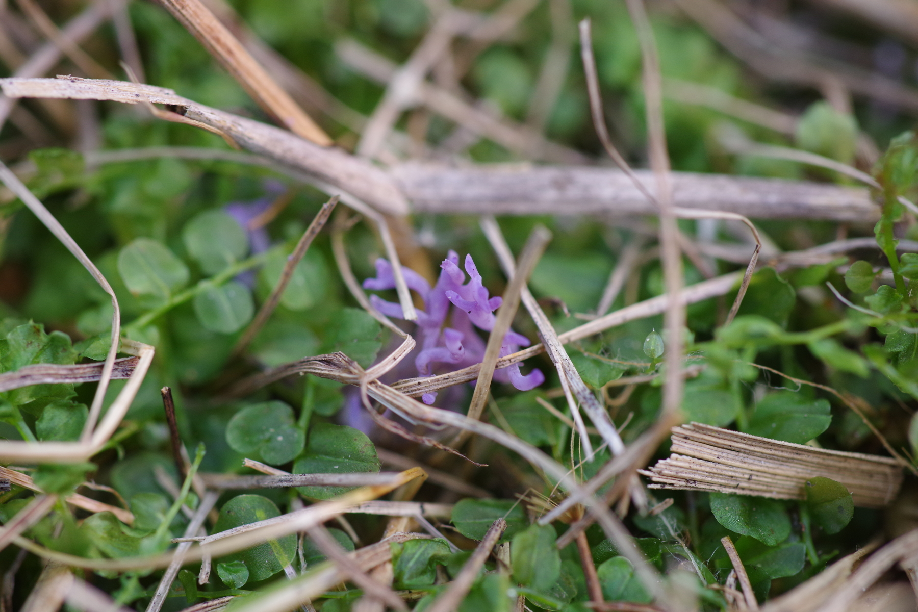 1) Ramariopsis pulchella (ich gehe mal davon aus, dass es die ist und keine Verwechslungsarten in Frage kommen), etwa 3 cm hoch über alles, danben auche kleinere