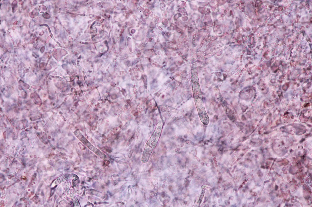 Der Stiel reagiert erst nach ein paar Minuten auf Guajak und die Reaktion wird dann mit der Zeit kräftiger. Auch reagiert der Stiel nach ein paar Minuten auf Phenol rosa, dafür gibt es keinerlei Reaktion auf KOH (falls man das überhaupt testet).