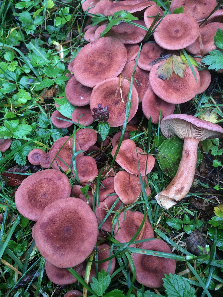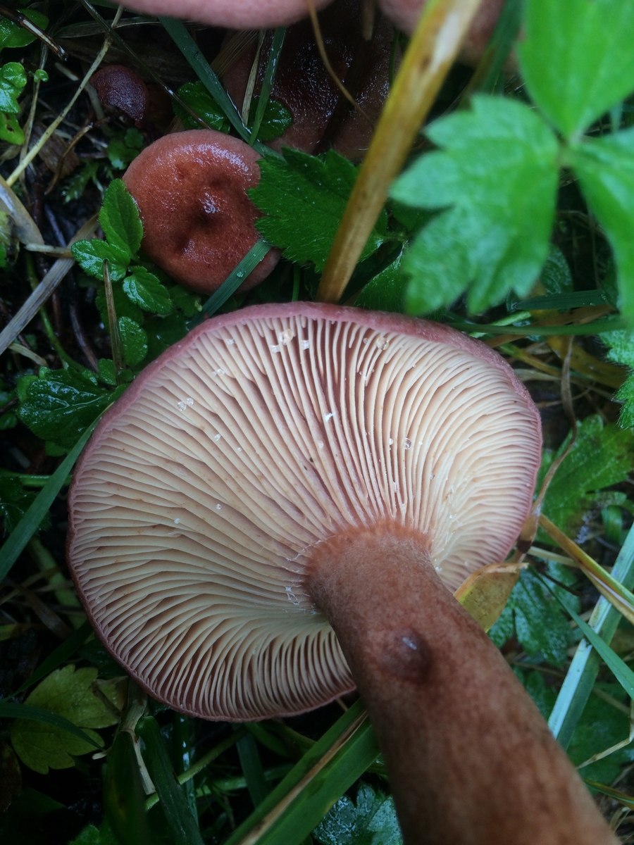 diese Milchlinge standen in grosser Zahl auf ca. 1400 m. Auf den ersten Blick dem Rotbraunen sehr ähnlich, aber mit mehr Rot im Hut, nach unten verdicktem Stiel und milder weißer Milch. Erst nach zwei Minuten war ein leichtes Kratzen im Hals spürbar. Ich hab leider nicht nur diese Bilder, da ich sie erst nicht einstellen wollte. Jedoch, die Neugier hat gesiegt.