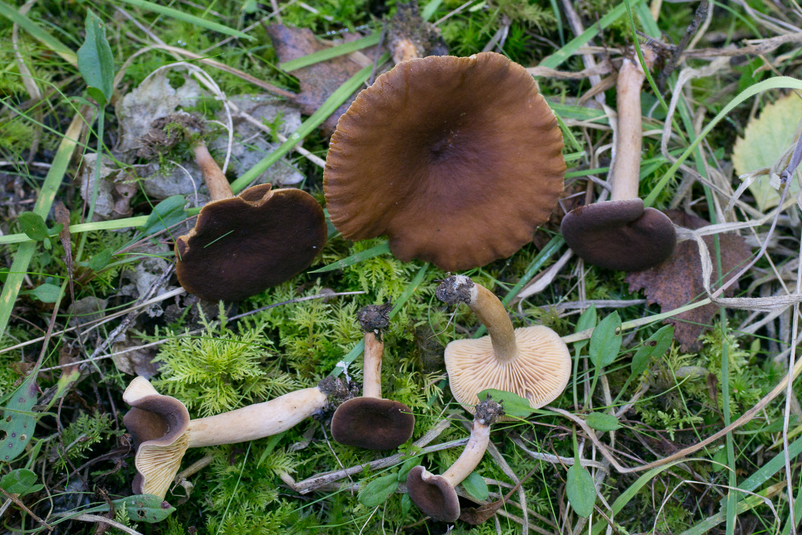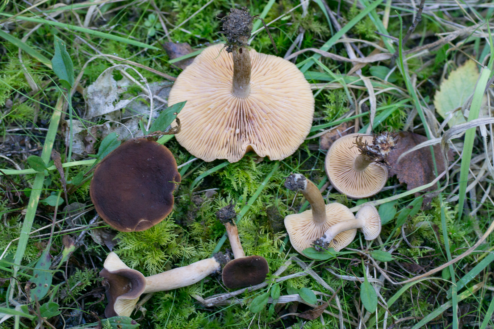 1. Den hier würde ich als Lactarius subumbonatus bezeichnen wollen, wegen der dunklen Farben, sofern das überhaupt eine eigene Art ist? Oder ist das das gleiche wie L. serifluus mittlerweile?