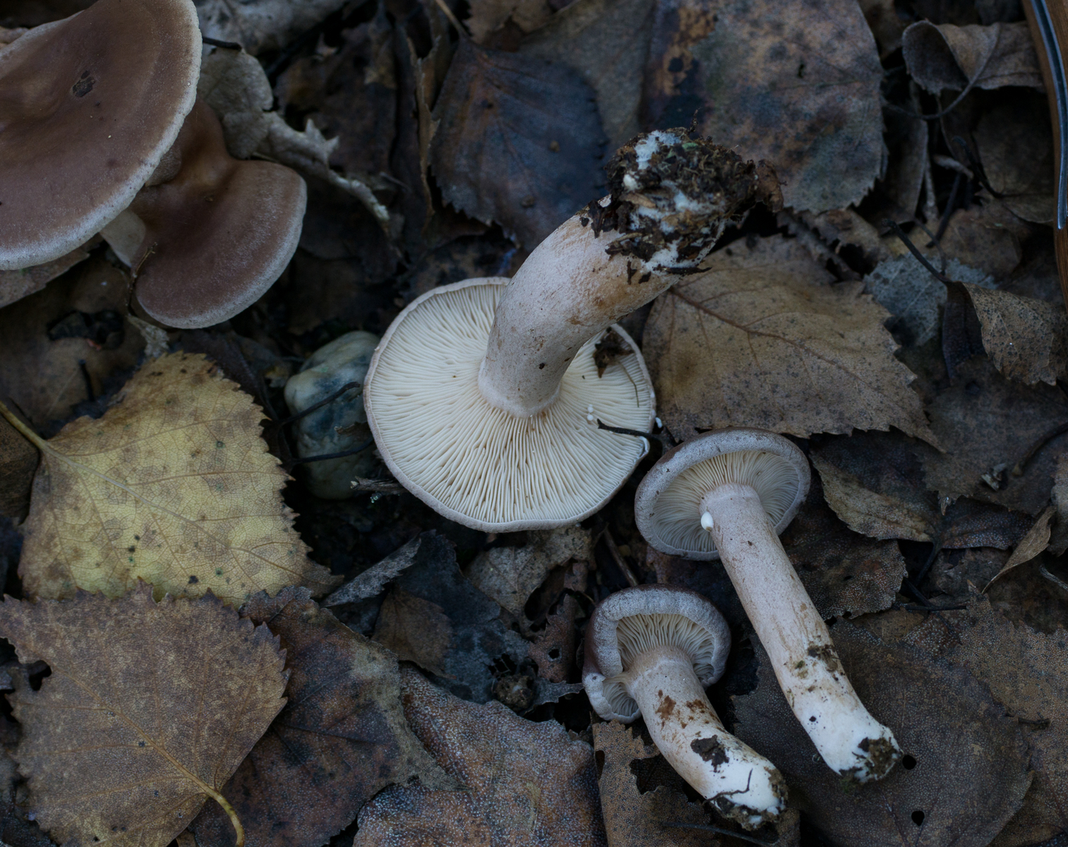 2. Bei denen fehlte mir erst, der Geruch, später konnte ich ihn aber noch ein wenig Kokos entlocken, also wird's einfach Lactarius glyciosmus sein, der hier zusammen mit seinem dunklen Bruder ziemlich häufig ist.