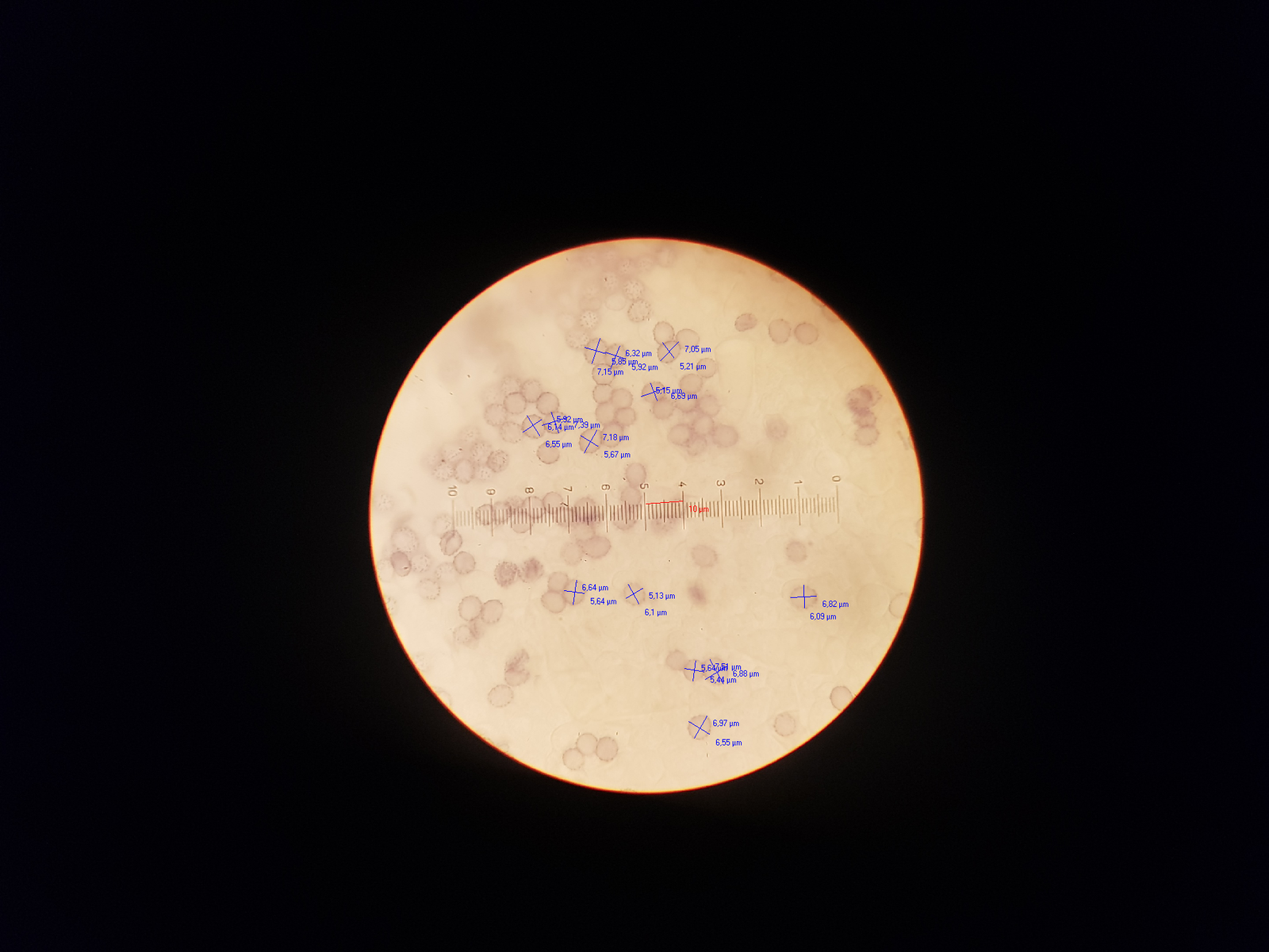 Die Sporen haben sehr niedrige Ornamente. Ich weiß nicht, wie ich sowas kleines genau messen soll, würde sie aber definitiv nicht größer als 0.5µm schätzen. Die Ornamente sind zum größten Teil isoliert, ich konnte aber wenige gratige Verbindungen auf manchen Sporen feststellen.