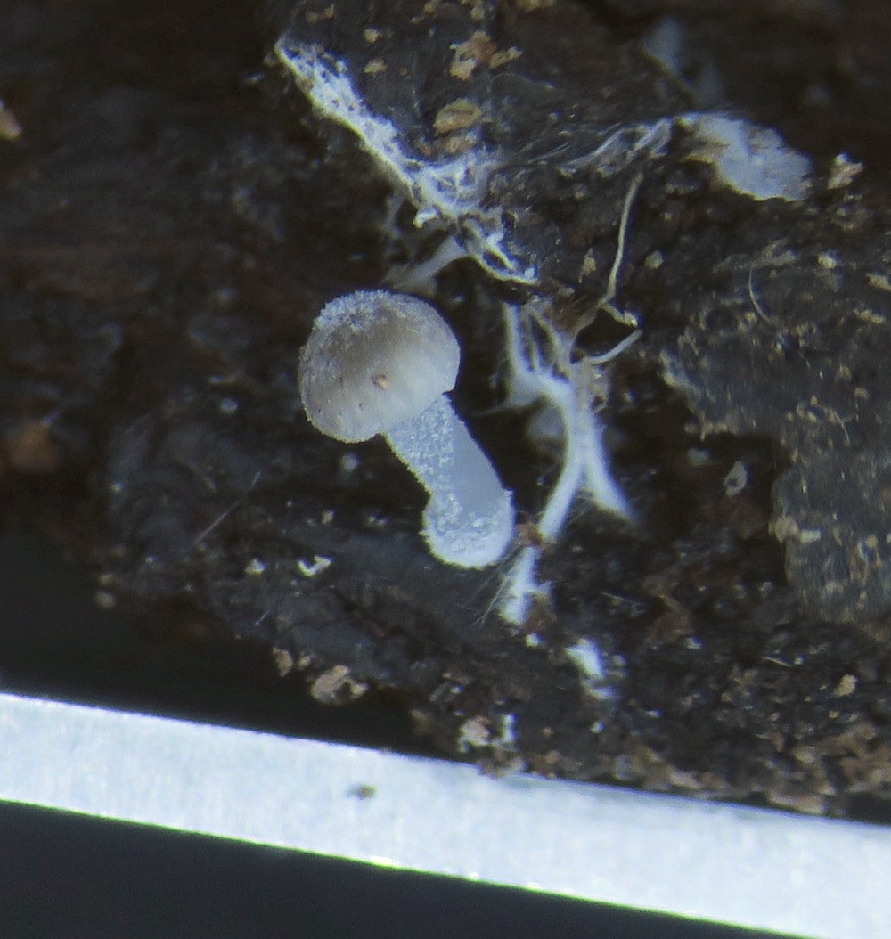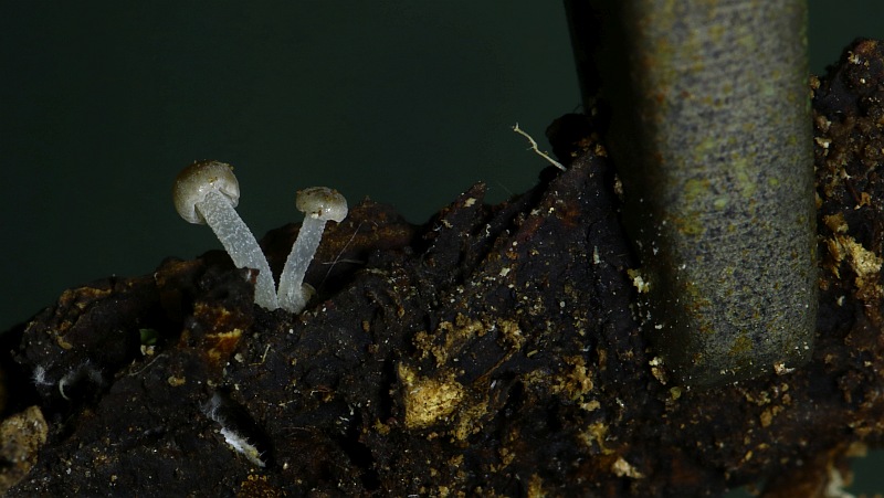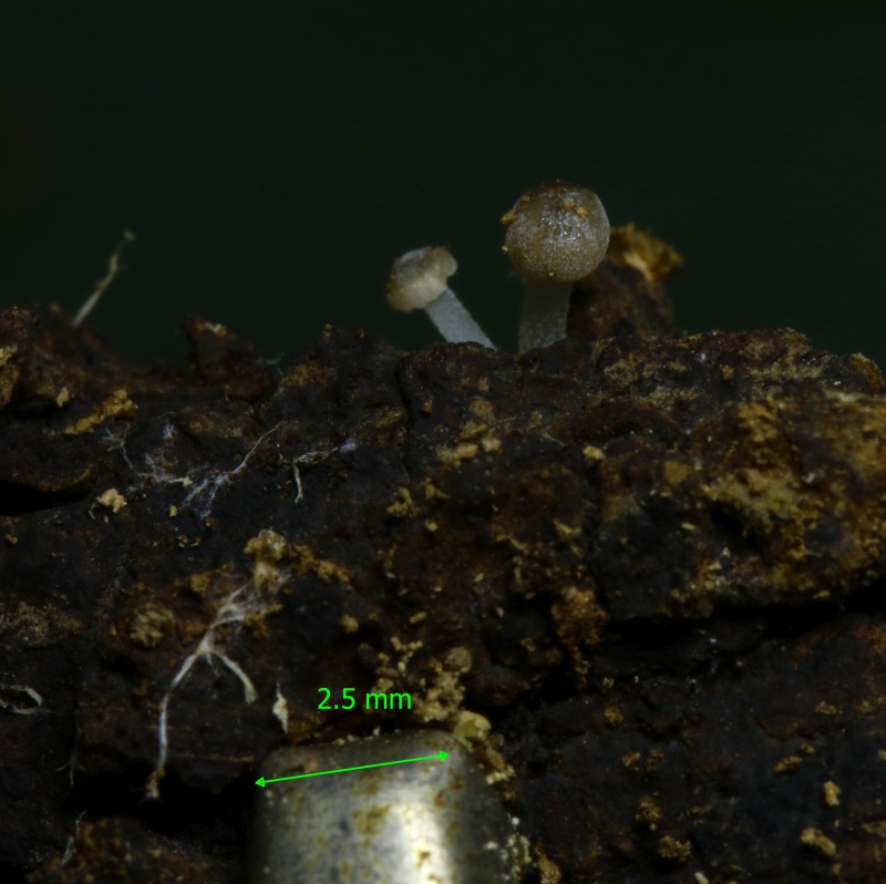 Good Morning. From my archives of unidentified fungi, here I am showing a tiny fungus, barely 4 mm tall and 2mm wide growing on decaying bark of Ceratonia siliqua (carob). Micro is not available since I have neglected this collection to spend time on others. It can be an abnormally small fungus of some common species, like a Psathyrella sp. (melanthina?) or whether it is the normal size of a fungus that I don't know at all !!! In desperation, I tried googling 'tiny brown mushroom' but I got a bunch of Panaeolina, Conocybe and Mycena and unrelated searches. == twitch