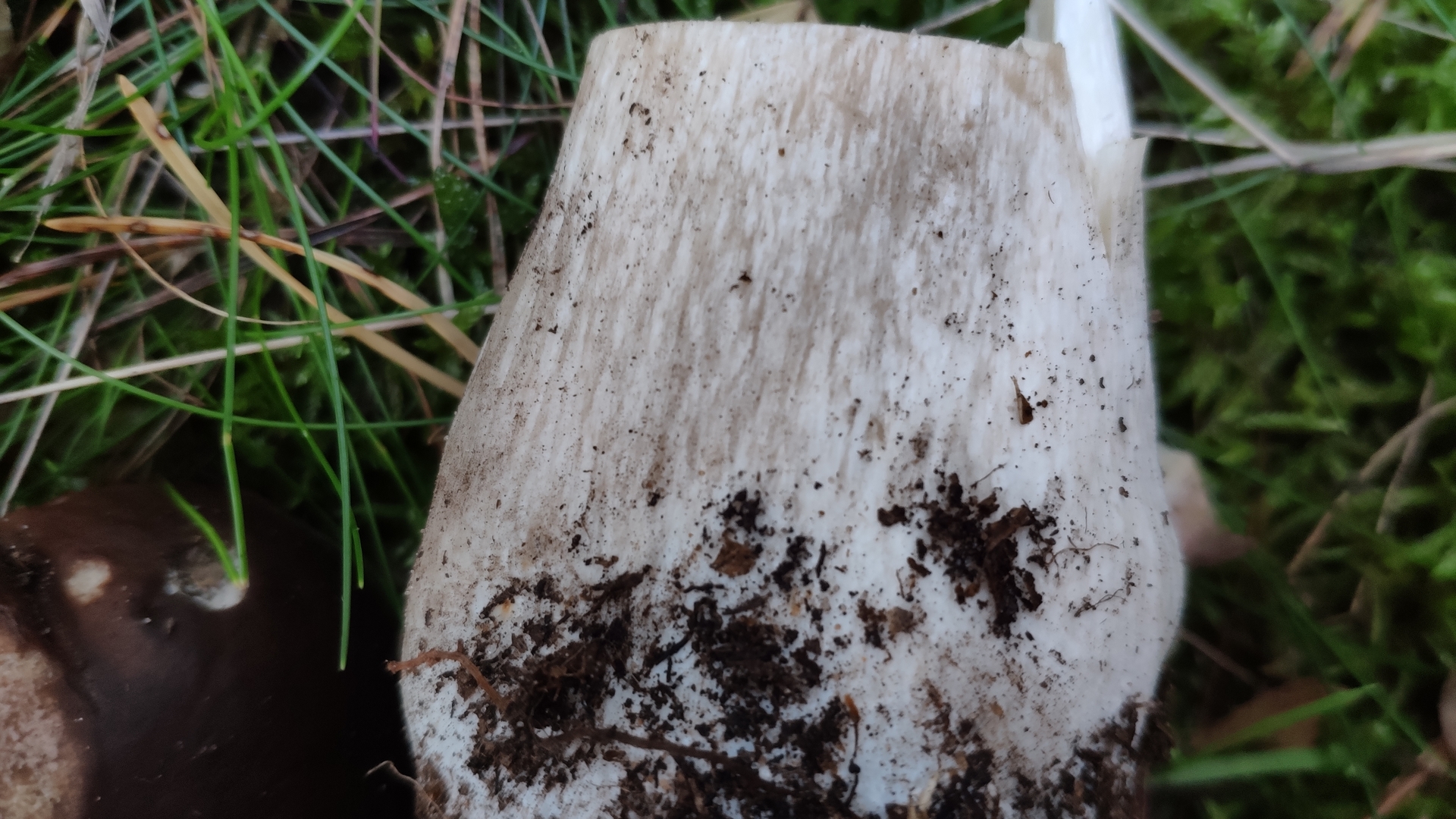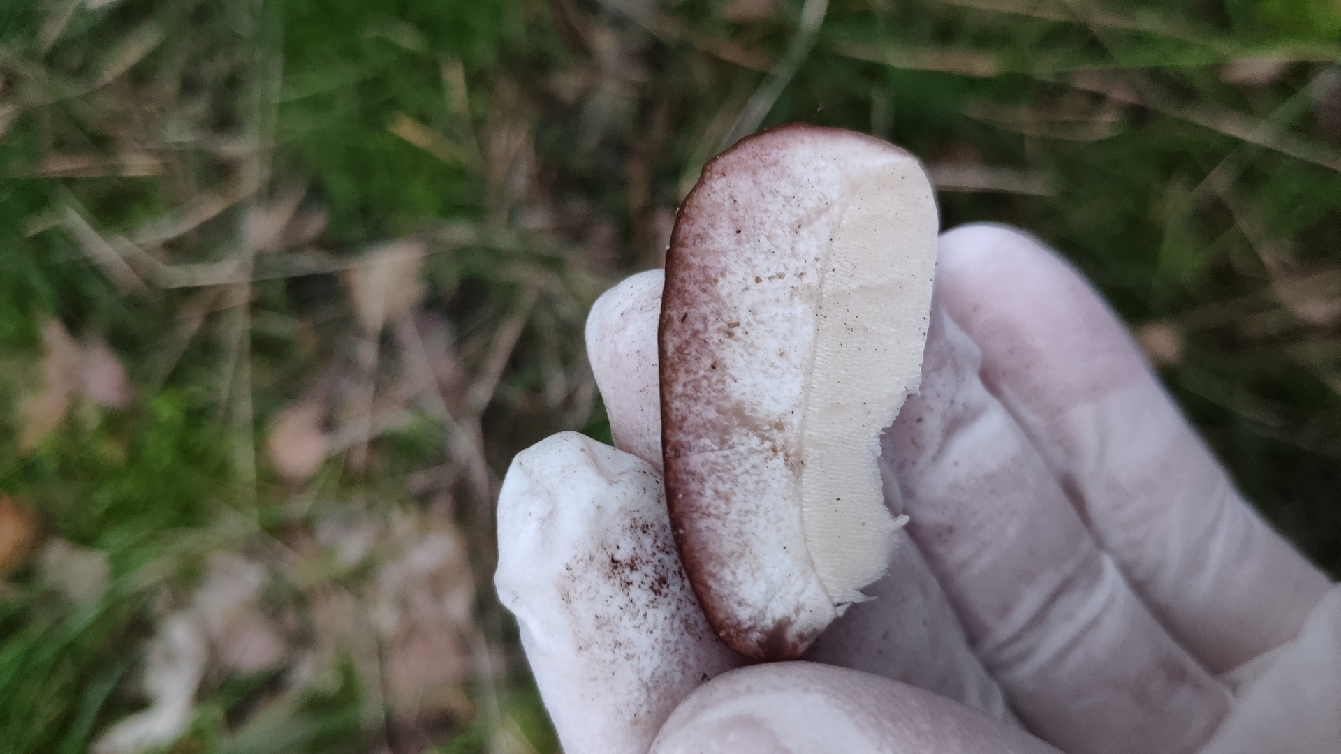 Das Hutfleisch war aber so hart wie von einem jungen Steinpilz gewohnt, komplett weiß. Da der Stiel des Pilzes ganz weich war und wie Pappe zusammengedrückt werden konnte, tippe ich auf einen sehr, sehr alten Pilz - er war auch immerhin groß wie eine große Hand. Bei einem alten Pilz mit weißem Hutfleisch und rosa Färbung tippe ich instinktiv auf einen Gallenröhrling aber der Stiel sah nun eher wie bei einem Steinpilz aus, besaß kein dunkles Stielnetz (aber auch kaum klare, weiße Netzstruktur, eher so schmutzige Musterung). Außerdem wird beim Gallenröhrling doch auch nichts erst nach dem Anschneiden rosa, sondern es sind die Röhren selbst? Hier war es deutlich von der Huthaut ausgehend.