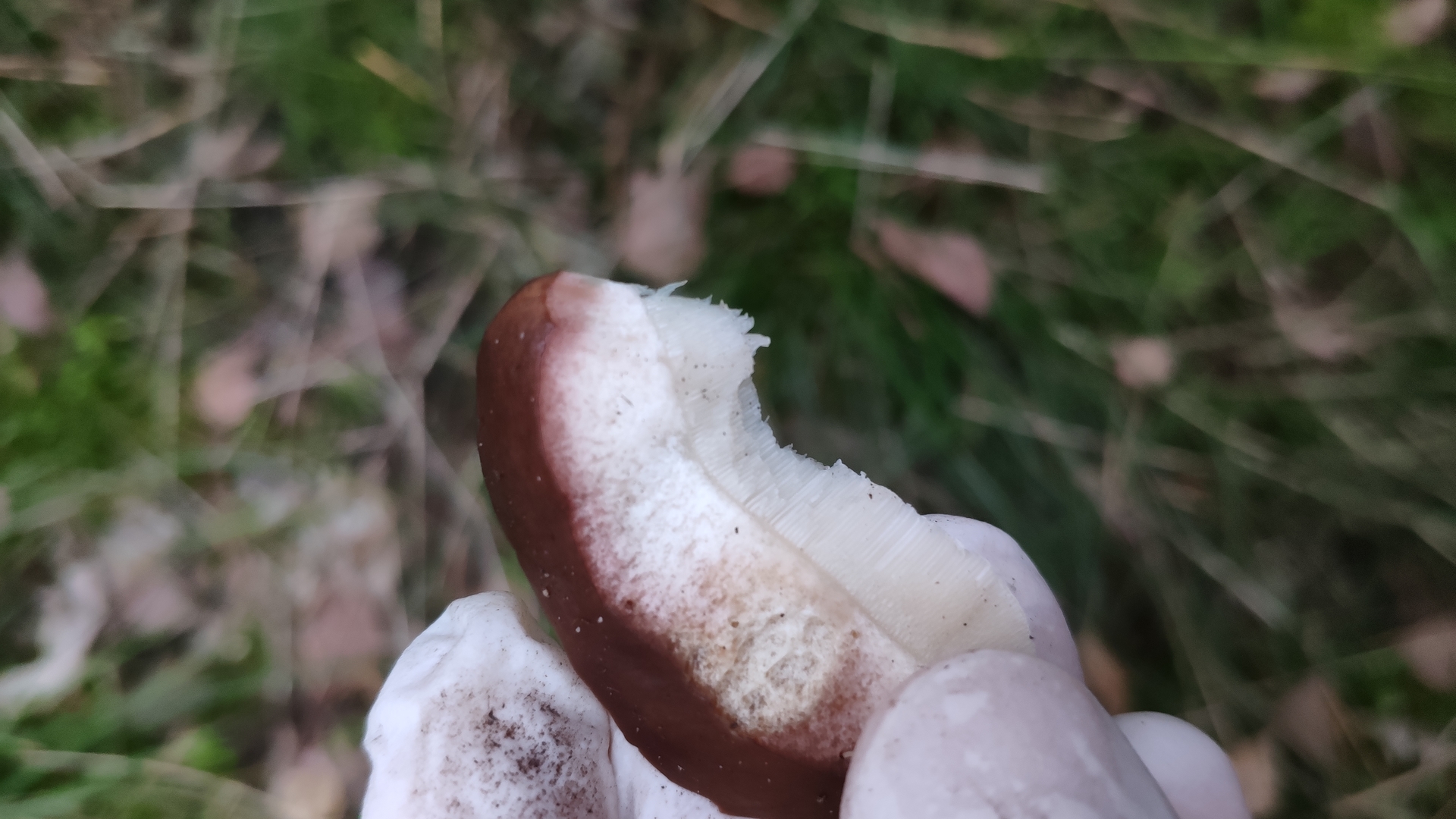 Das ist beim Steinpilz (Boletus edulis) typisch das das Hutfleisch unter der Huthaut ein wenig rotbraun eingefärbt ist, sonst zeigt er keine Fleischverfärbung.