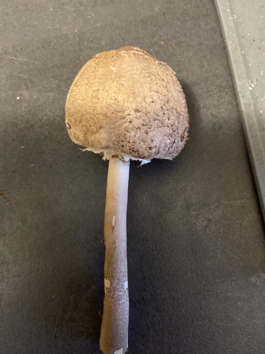 Schirmpilz ist richtig aber für genauer kann sicher jemand anders besser. Hast du ihn mal angekratzt ? Die Farbe wäre interessant.