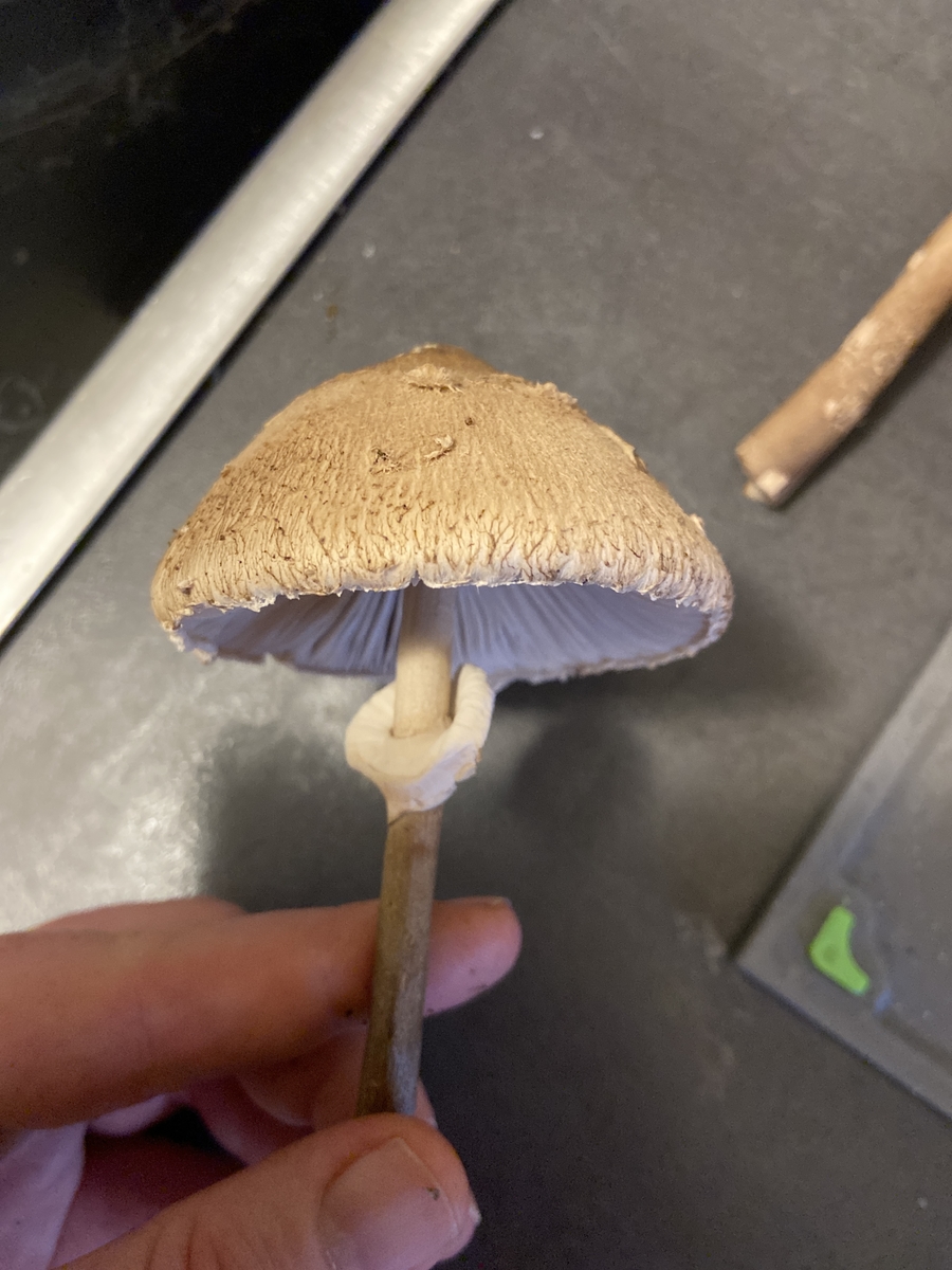 Macrolepiota sp ( per Ring ) alles anderes wegen Kunstlicht unerkennbar - von Farbe bis Stielstruktur