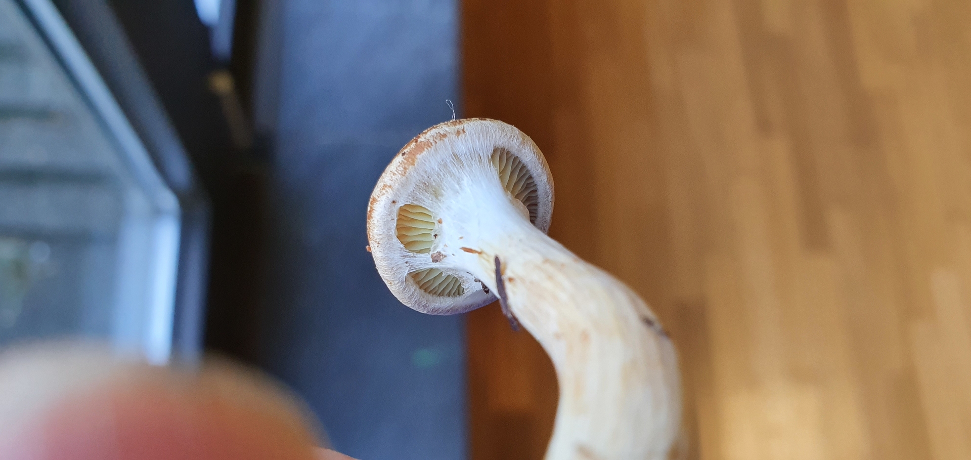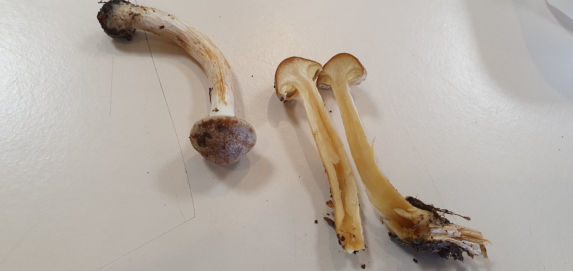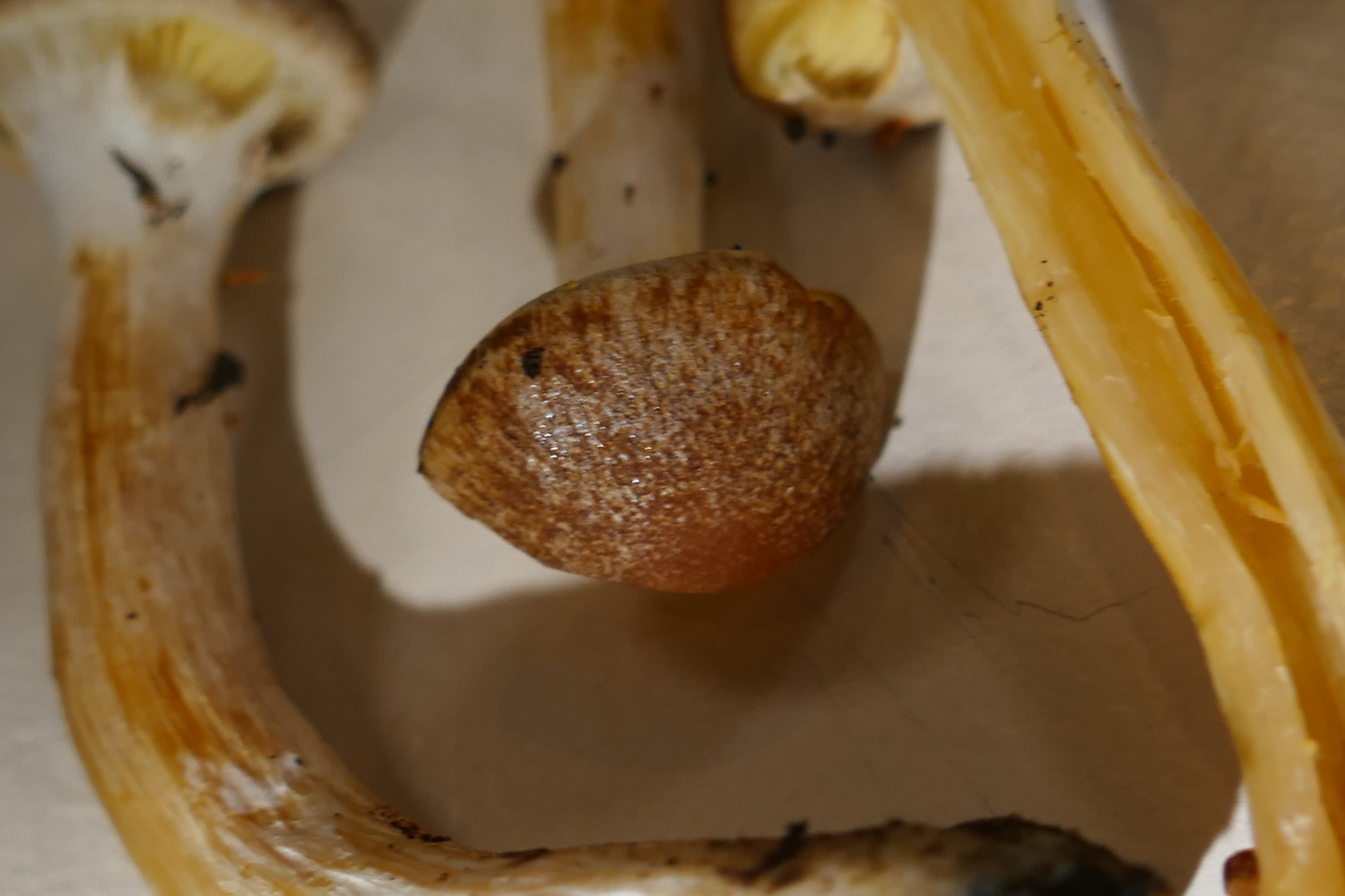 Auffällig sind die gelben Lamellen, welche durch eine weisse Cortina bedeckt sind.