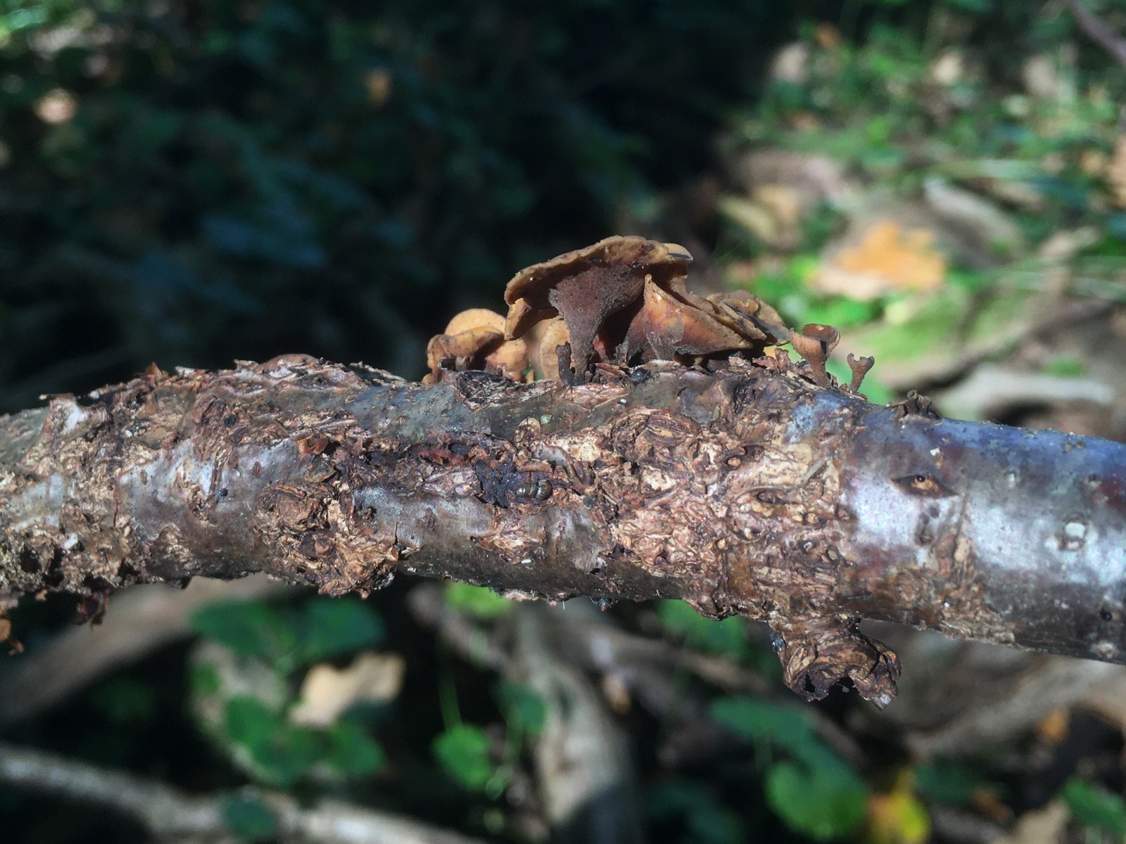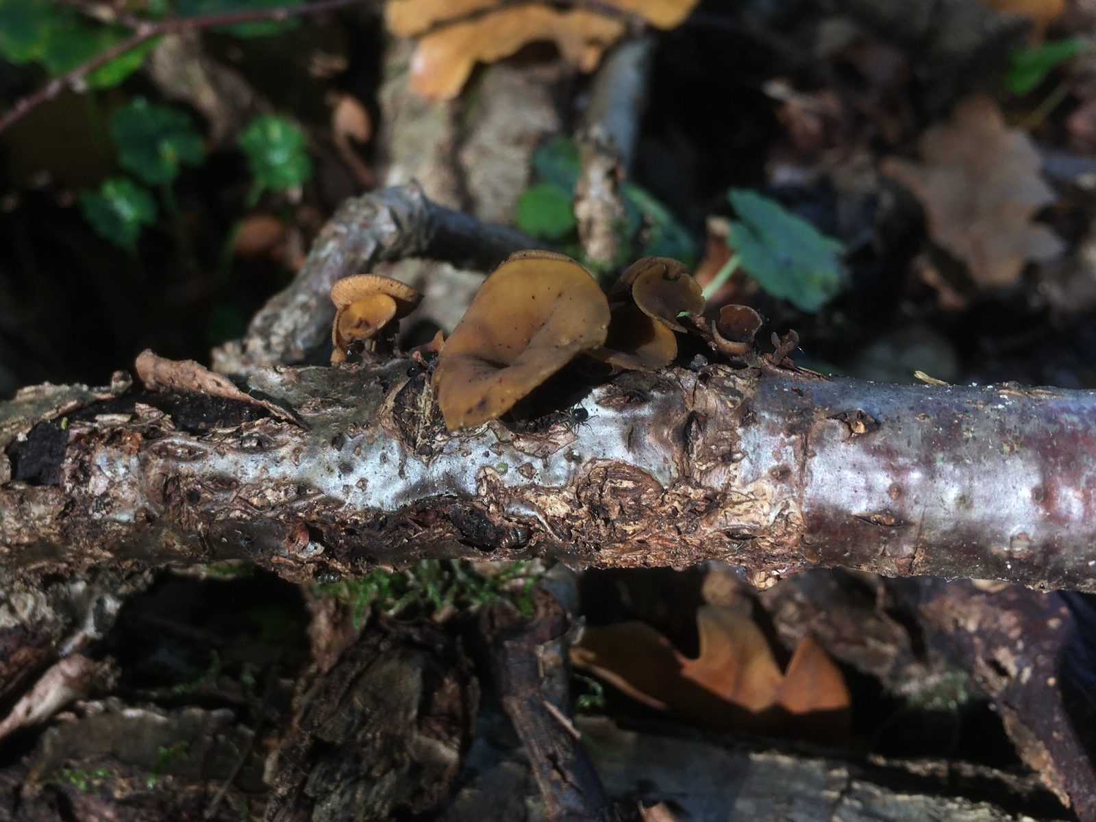 beim heutigen Spaziergang fand ich auf einem alten Stapel Astschnitt in einem Eichenwald (auch vereinzelt Buche, Ebersche und Randgehölz wie Pfaffenhütchen) der in einem Entwässerungsgraben gelandet war die folgenden Stromabecherlinge. Zunächst dachte ich es wären einfach Eichelbecherlinge (Ciboria batschiana) die sich verirrt haben, weil ich die auf dem Weg dorthin in größeren Mengen fand. Sicherheitshalber hab ich trotzdem mal welche eingesteckt- das war gut, denn ich las: es gibt gar nicht so wenige spezialisierte Astbecherlinge. Leider finde ich den Schlüssel Synoptic keys to the inoperculate stromatic discomycetes in the Nordic countries auf der Seite der Uni Oslo nicht:( hat den zufällig wer? bzw brauche ich ihn überhaupt oder kann man die evtl doch makroskopisch schon festmachen? Größe bis ca 12mm Durchmesser.