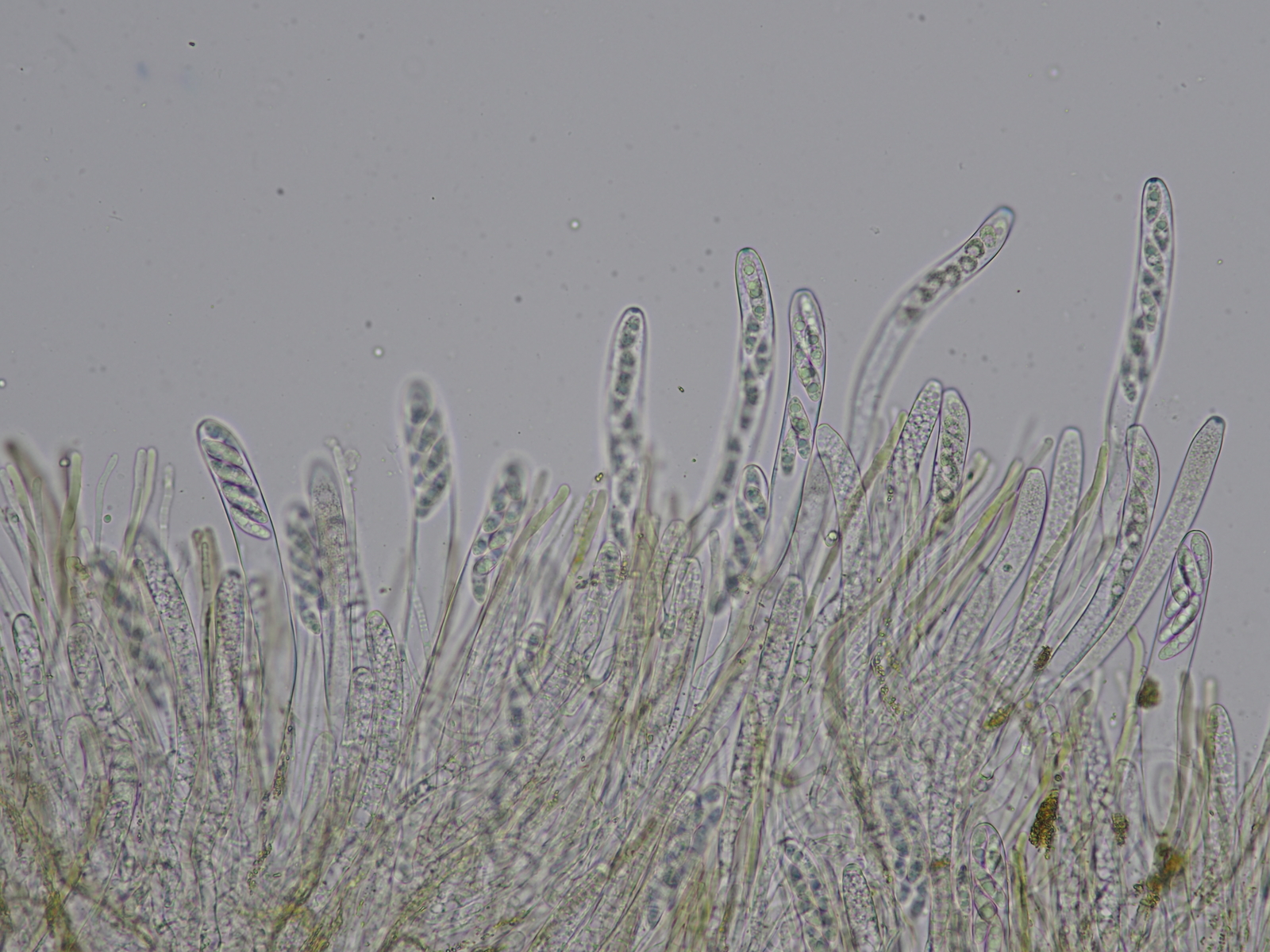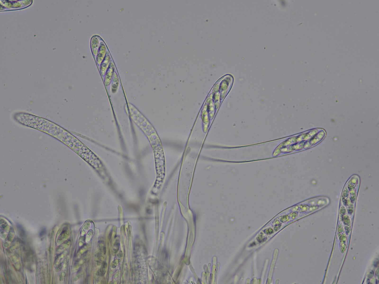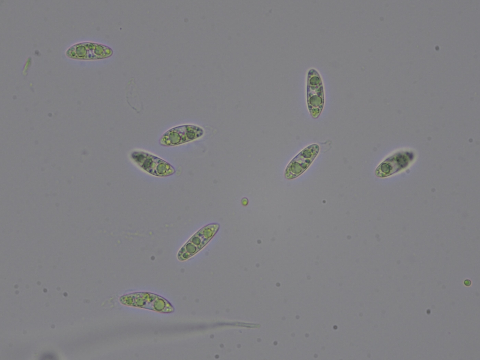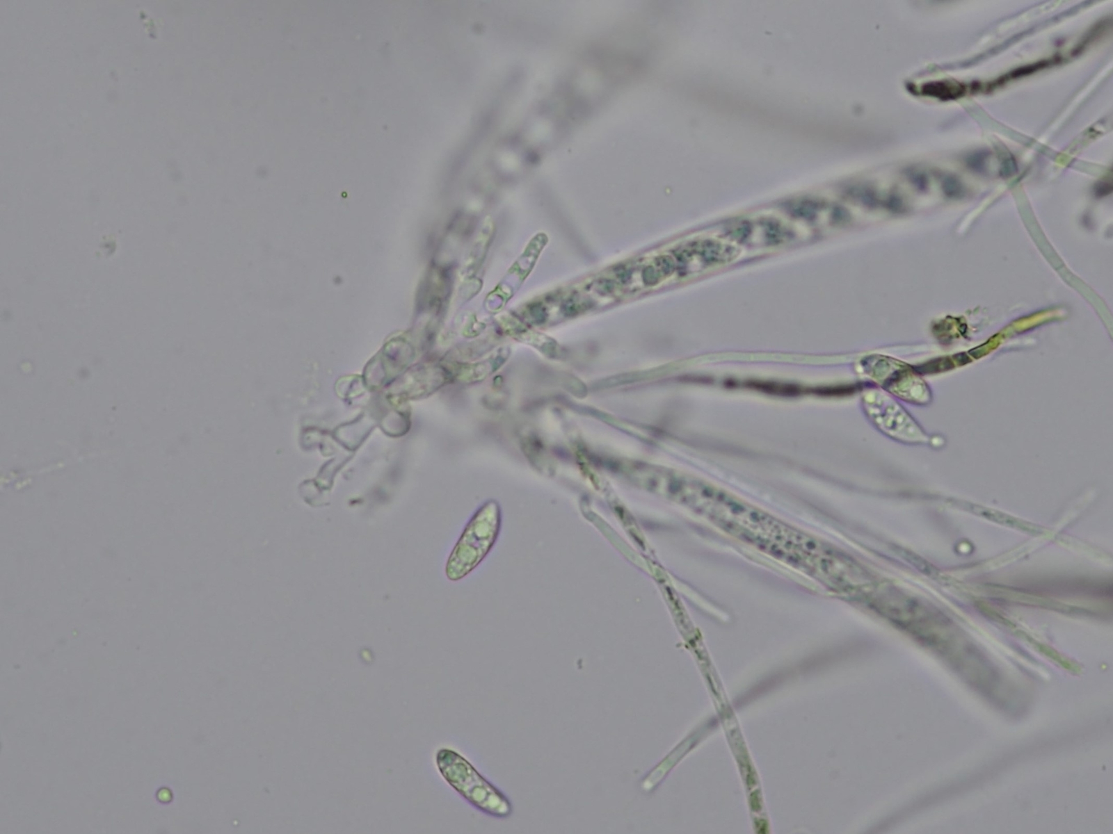 Die Sporen hatten öfters kleine kugelige Abschnürungen, die sich offenbar auch ablösen können (siehe Mitte hier)