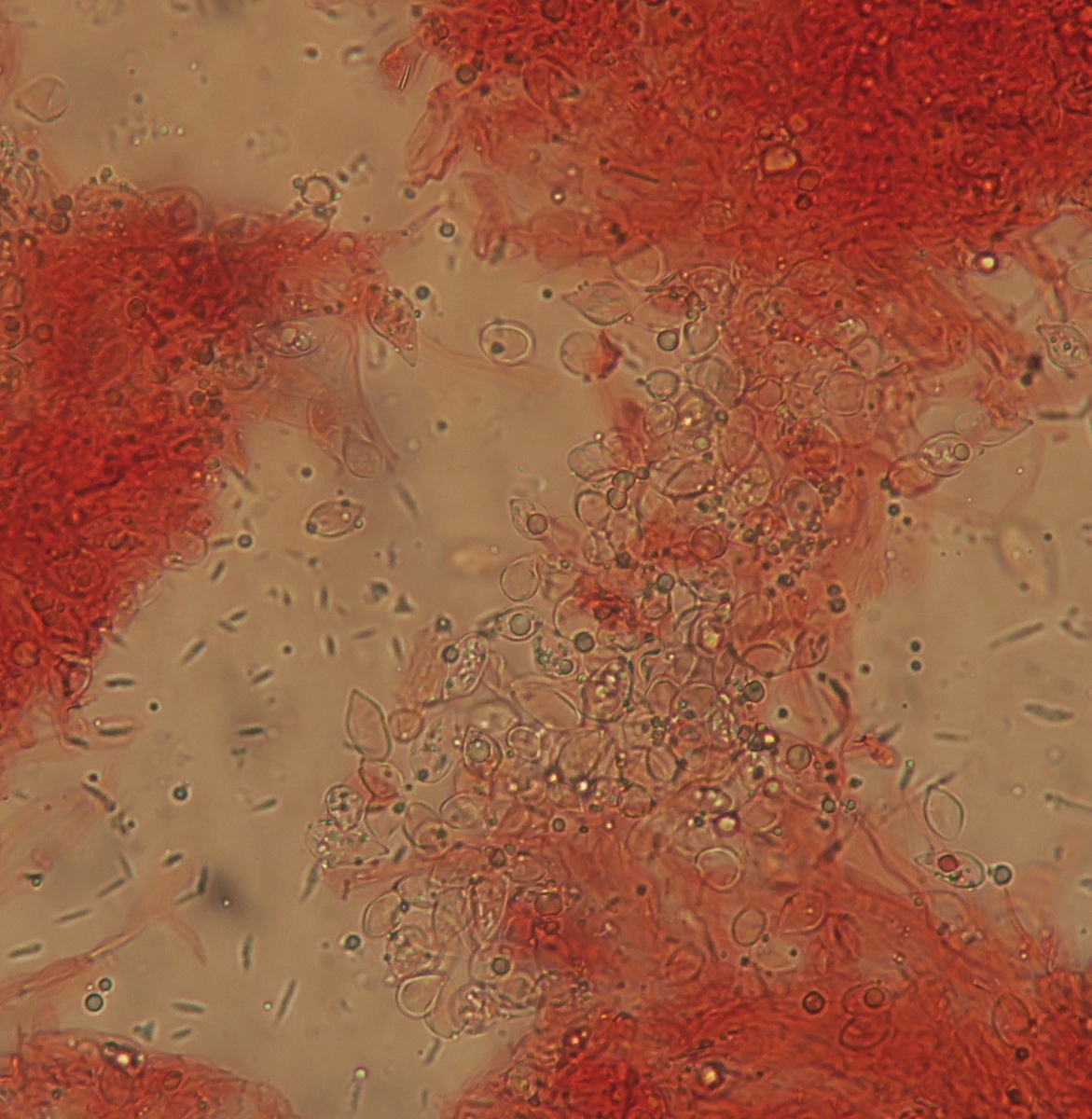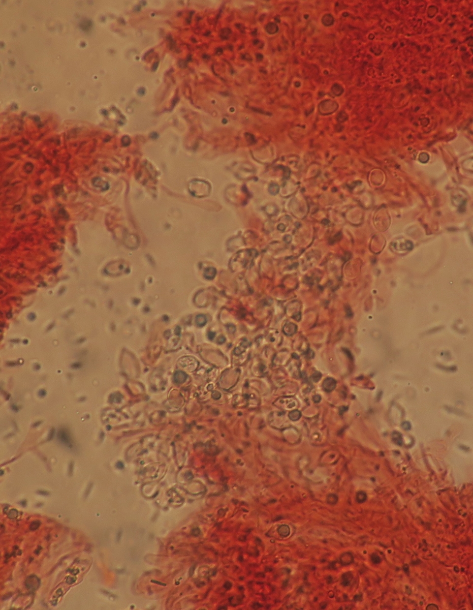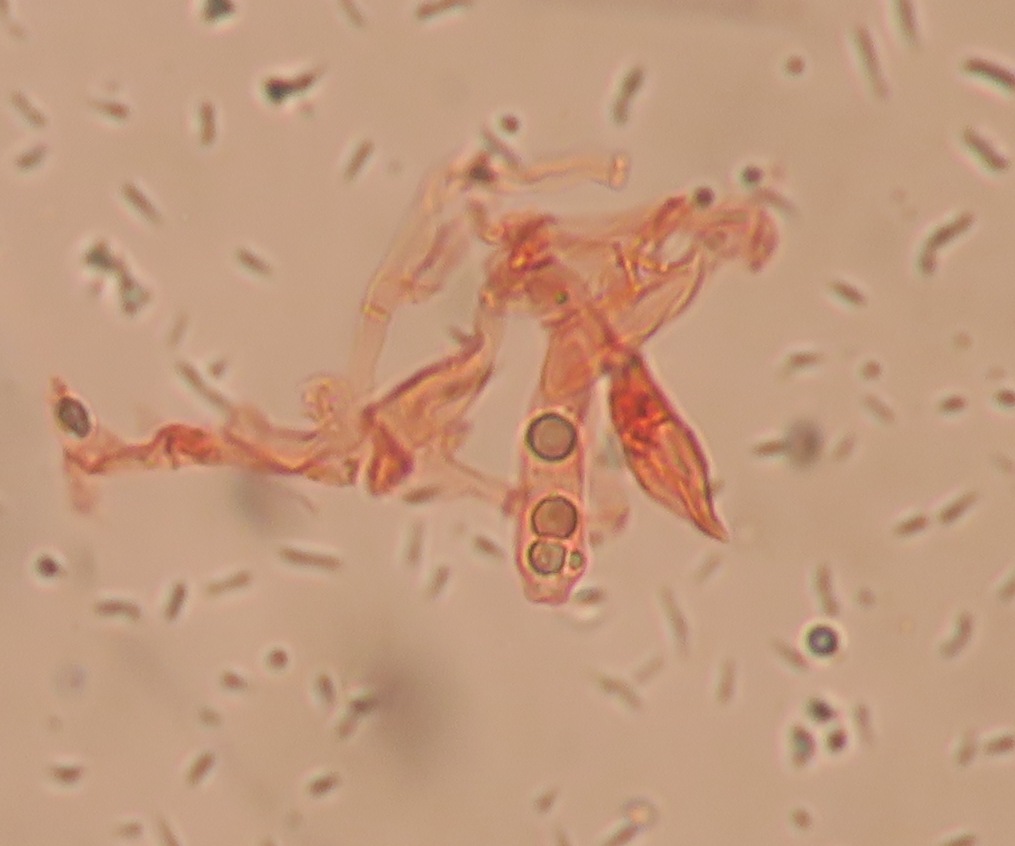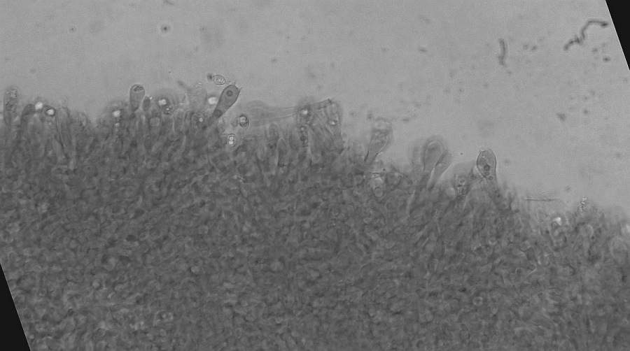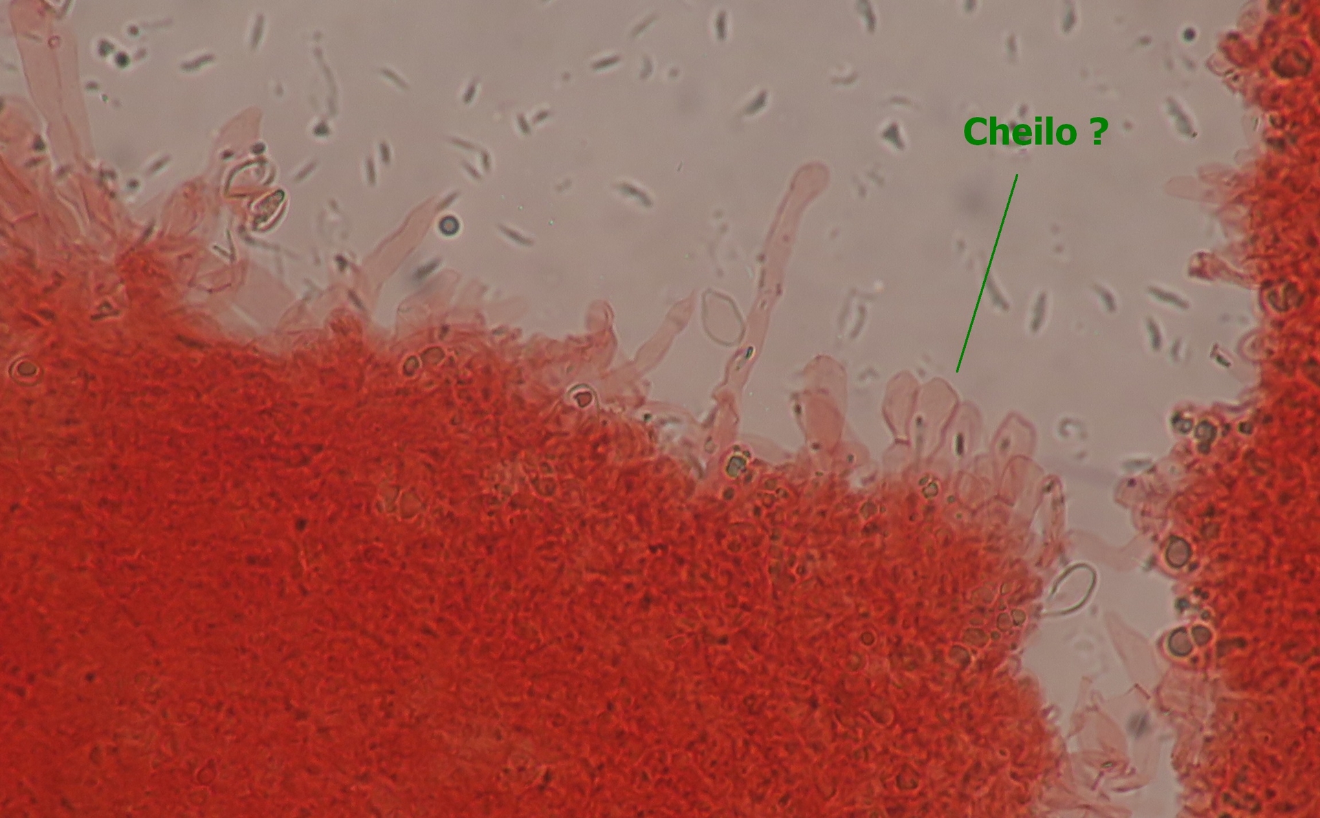 Hi, I have checked again the lamellae using a slightly different mounting technique. Lots of details has been preserved, and I can surely see basidia, and spores that are immensely variable in size and abundant. There are also some hyphae that are possibly cheilo/pleuro cystidia. I post everything here!