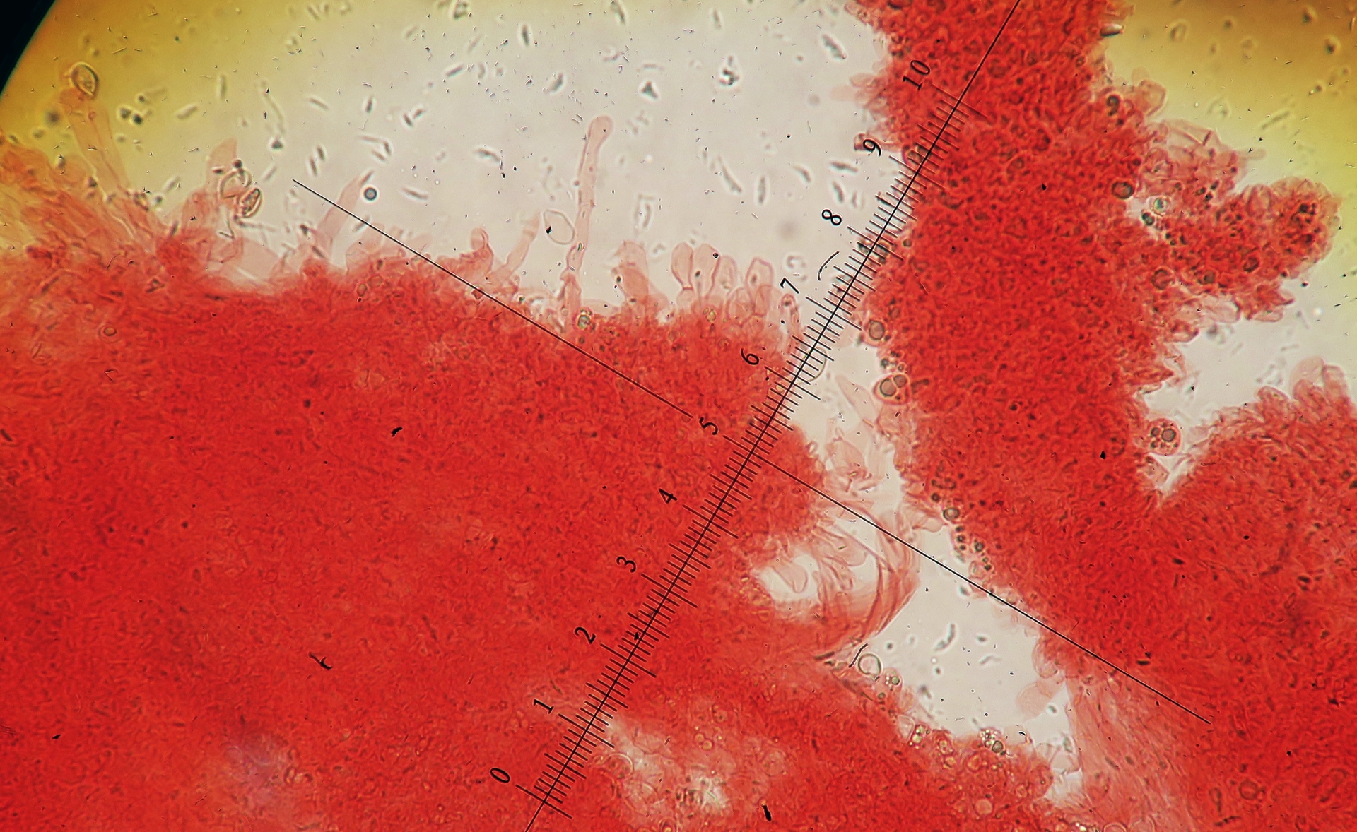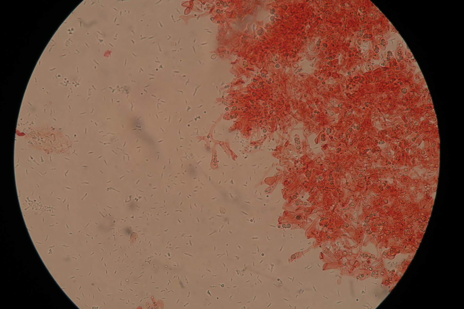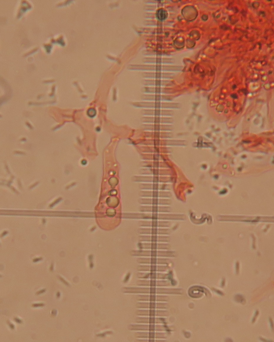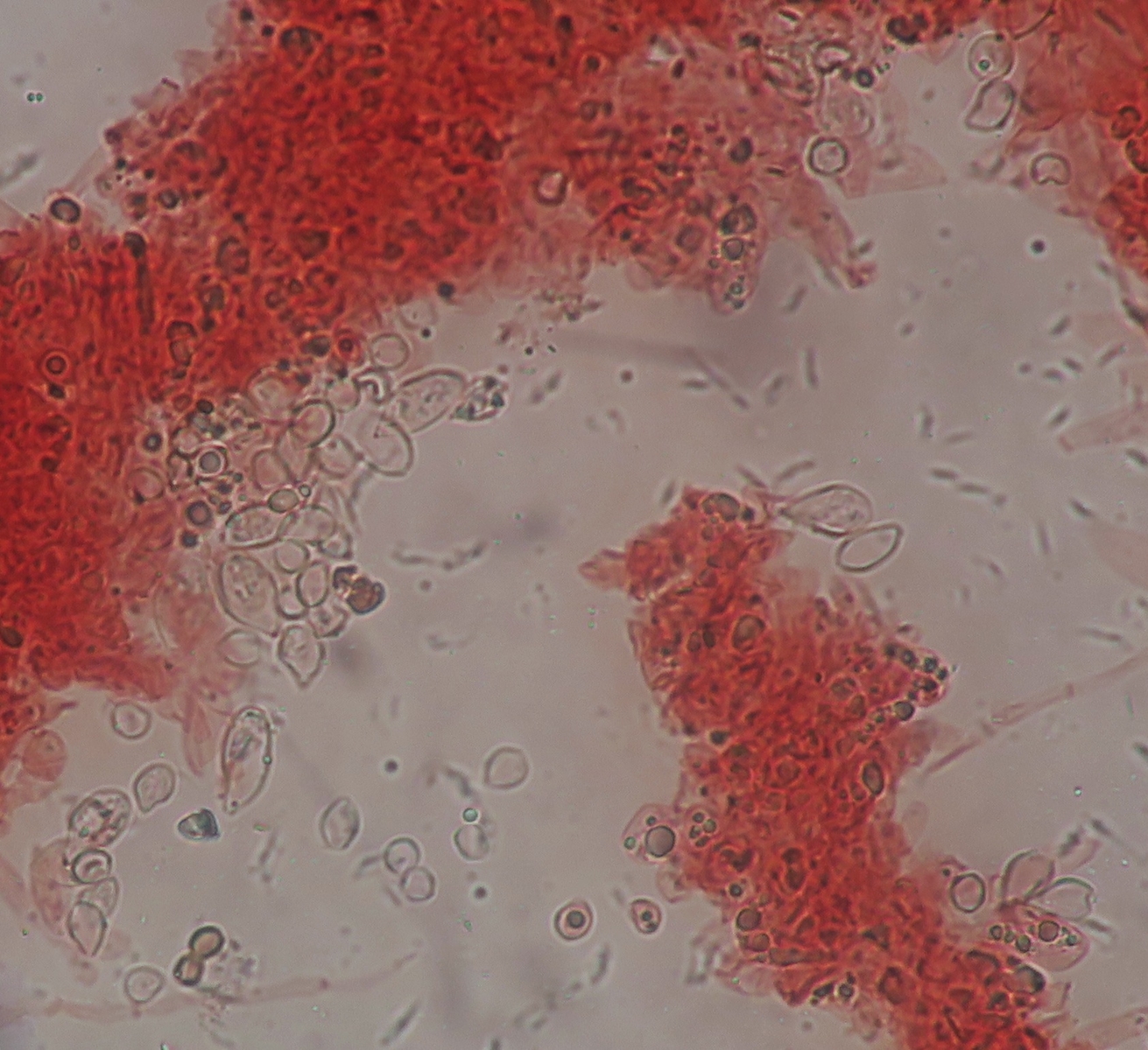 Hi, I have checked again the lamellae using a slightly different mounting technique. Lots of details has been preserved, and I can surely see basidia, and spores that are immensely variable in size and abundant. There are also some hyphae that are possibly cheilo/pleuro cystidia. I post everything here!