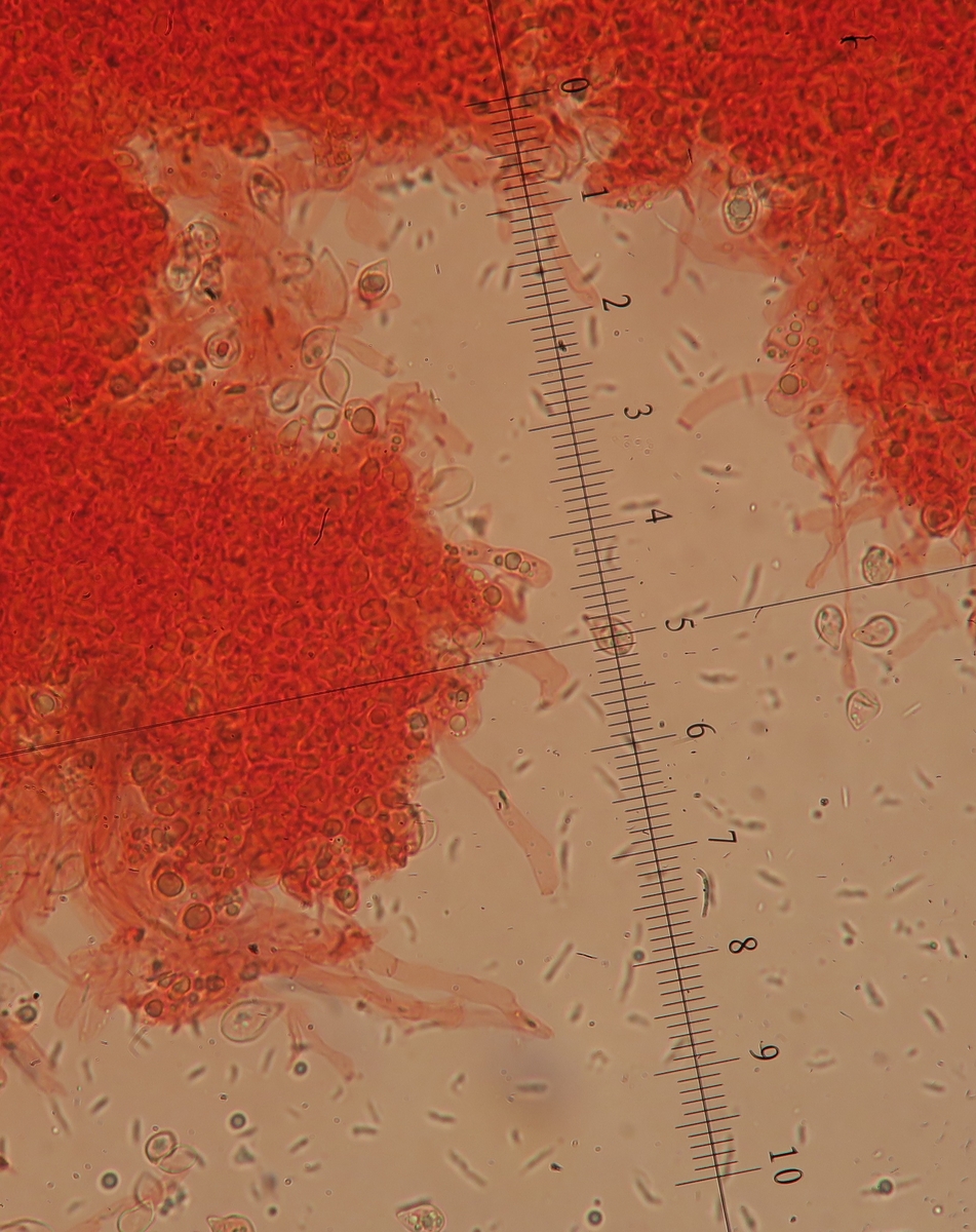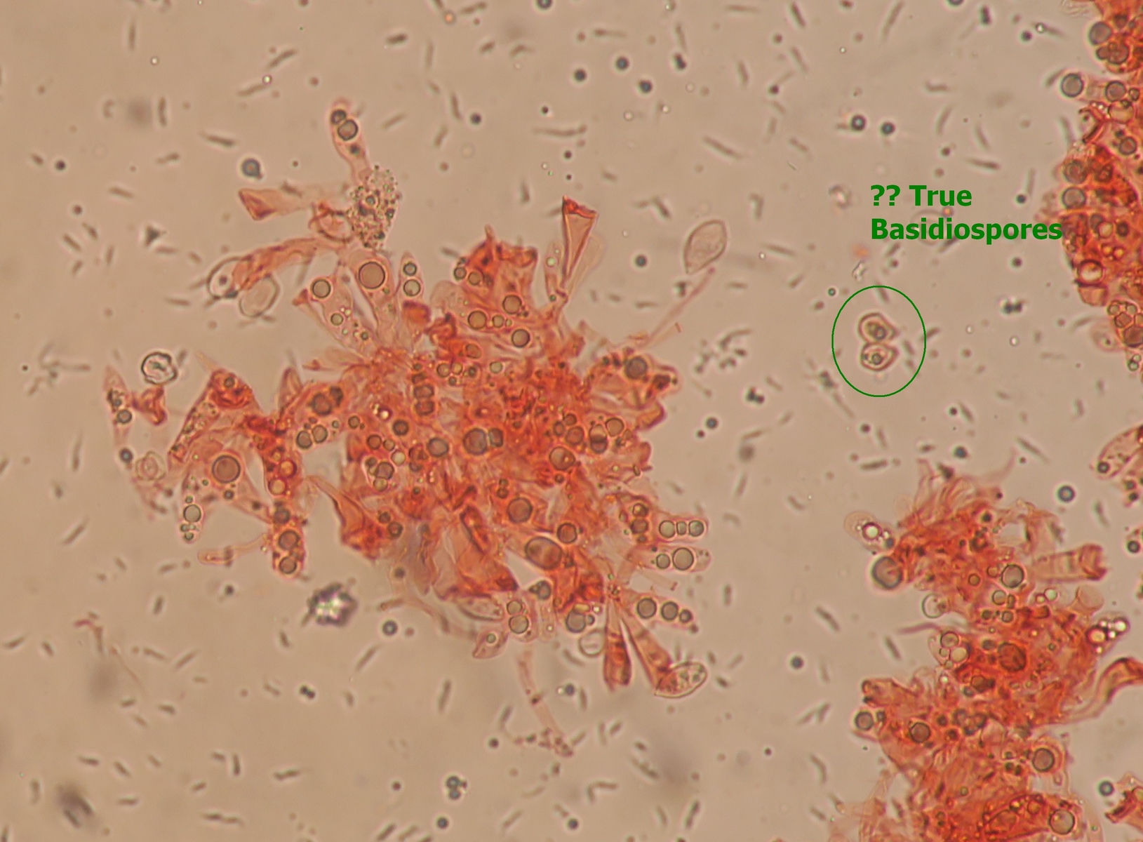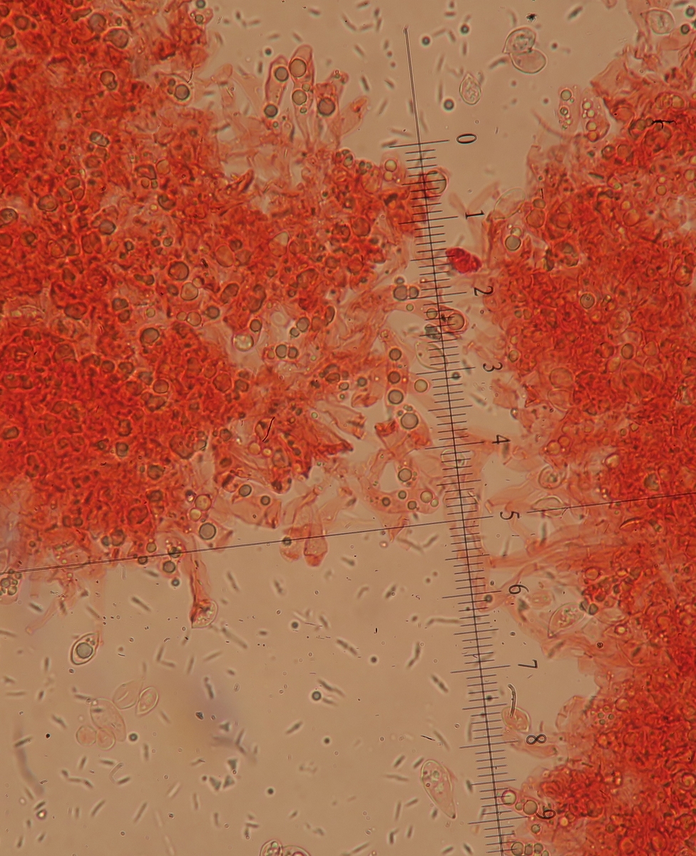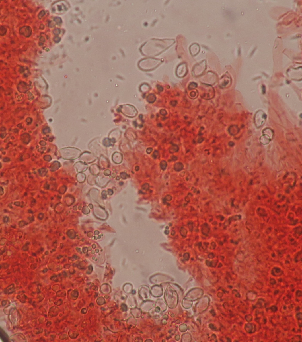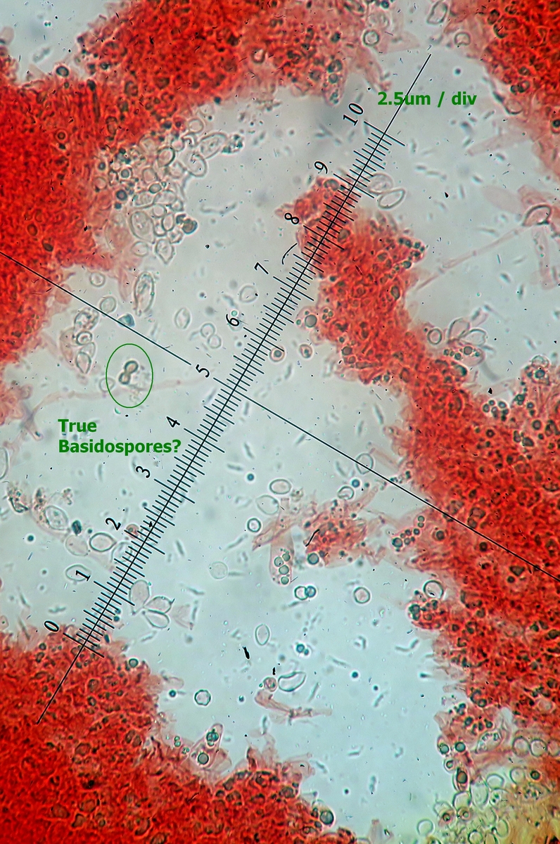UweYes, I was also puzzled. I had in mind this strange thought of some sort of Asterophora and we are seeing Chlamydospores ?!?! However this is a parasitic genus right?. I can redo the spores but I am absolutely sure I was under x400. Spores from a contaminant fungus during dehydration is also possible, but again... low possibility.