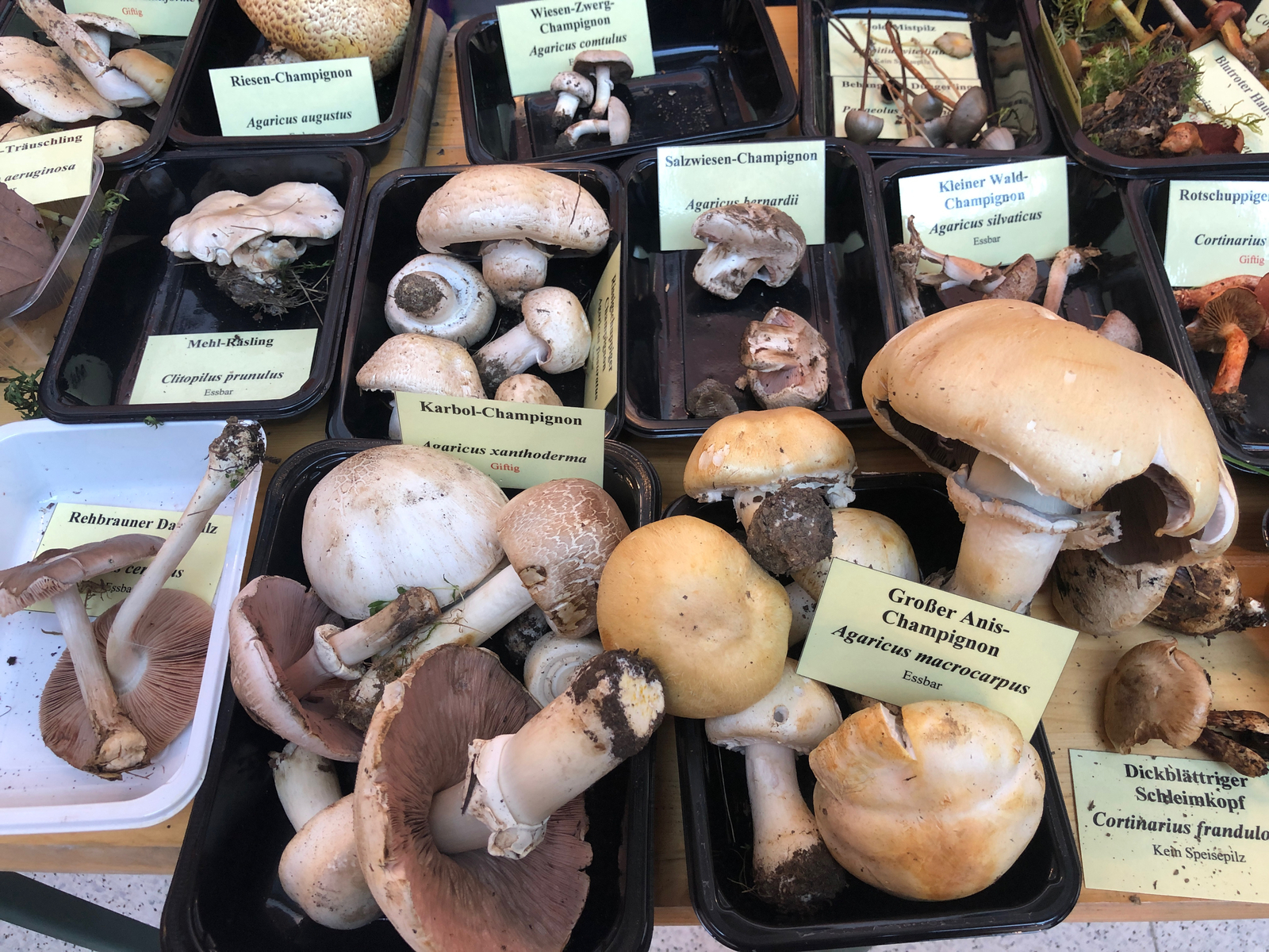 Karbolegerlinge und Riesenschirmlinge wäre diesmal die Renner. Sie wurden mehrfach mitgebracht und immer wieder nachgefragt. Vorbildlich: Das erspart den Stress nach dem Verzehr der giftigen Doppelgänger.