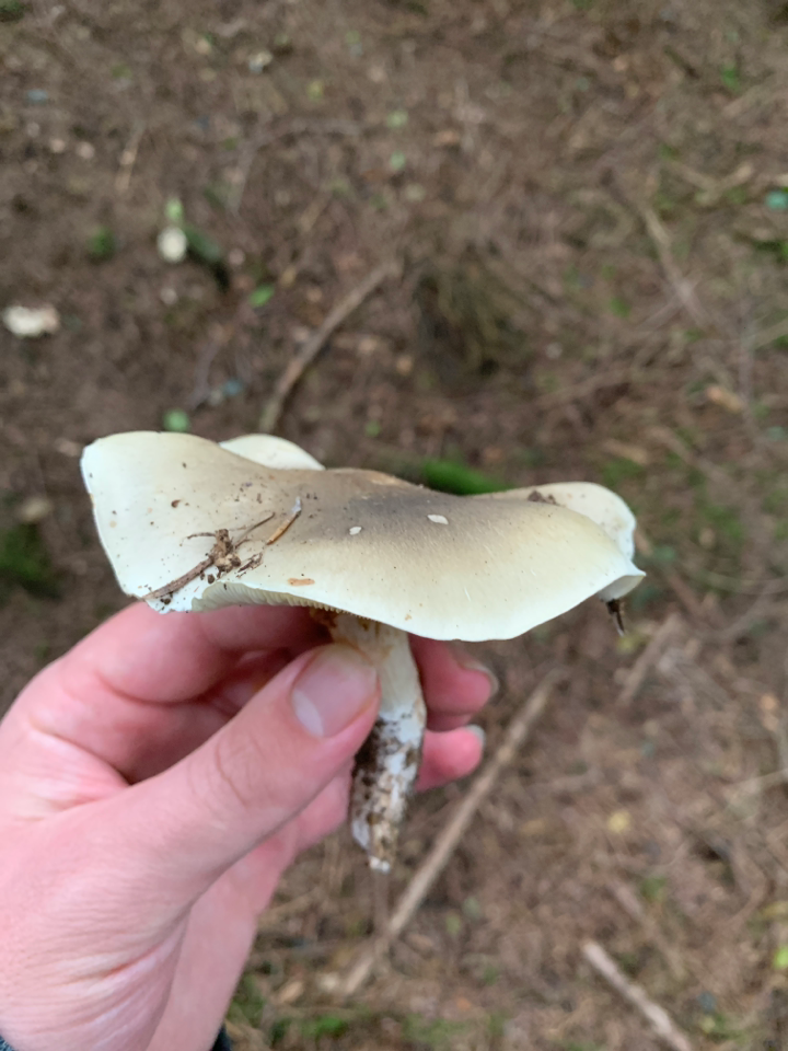 Dieser Pilz sah für mich von oben wie eine Lepiota aus mit der aufreißenden Huthaut, der Stiel ist aber wohl unberingt. Fundort war im Fichten/Weißtannen Wald, eine Birke stand aber auch nicht weit entfernt.