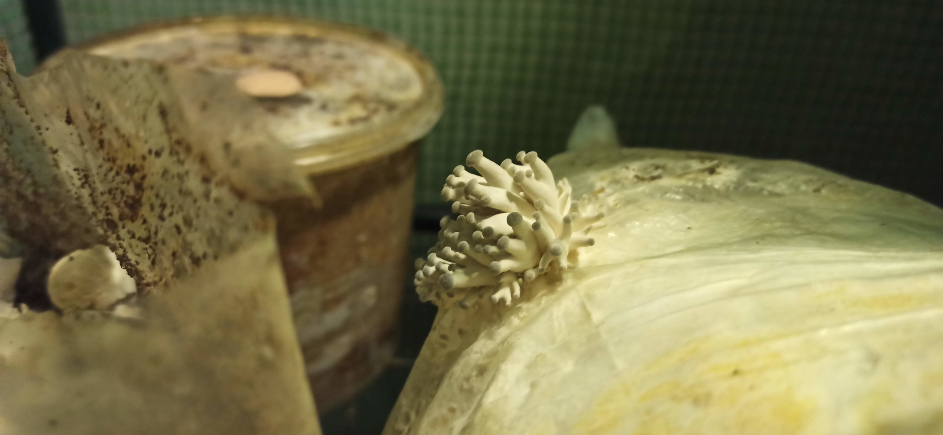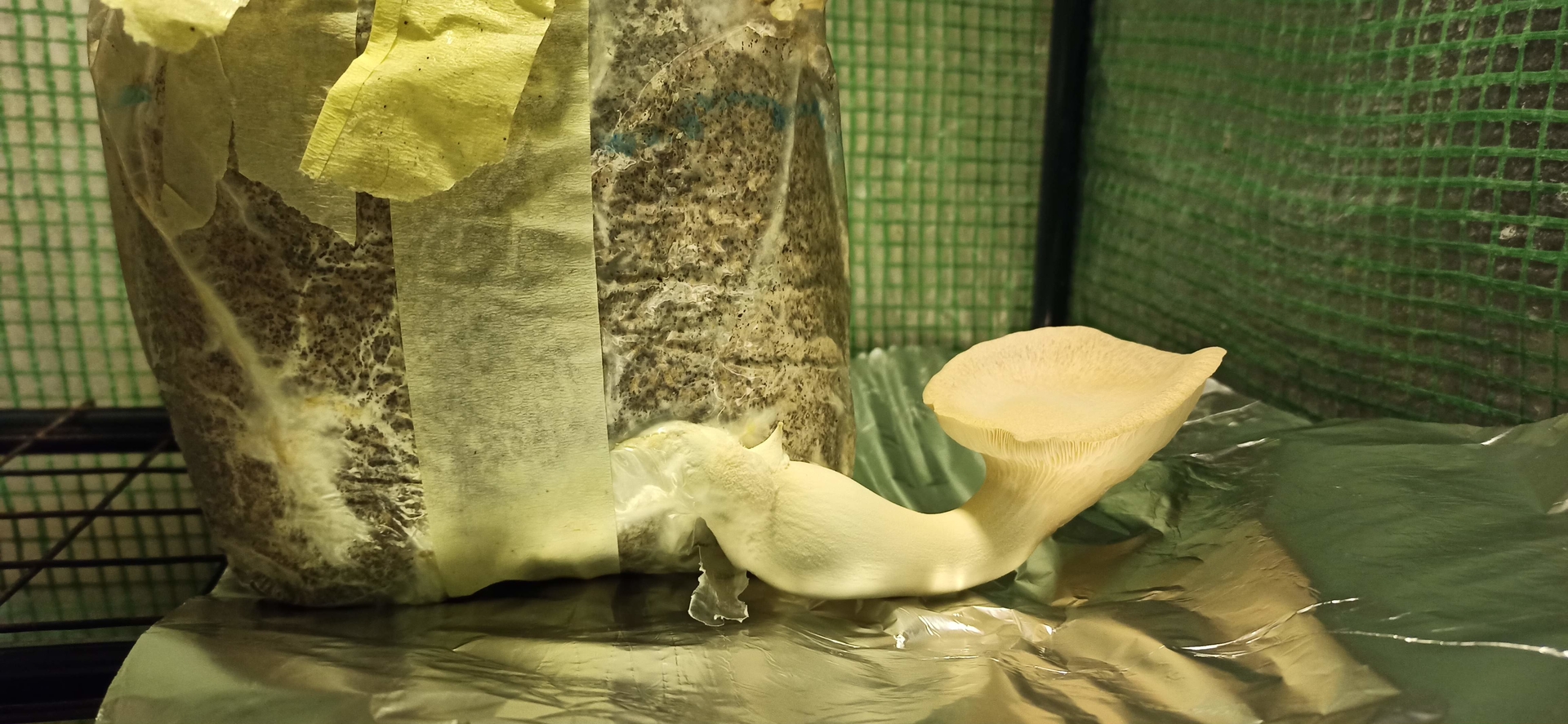 eine Kultur von m.E. Kräuterseitlingen dürfte das sein. Wie kommst du denn da dran, ohne zu wissen, was das ist? Sehr leckere Pilze übrigens, wir ich finde.