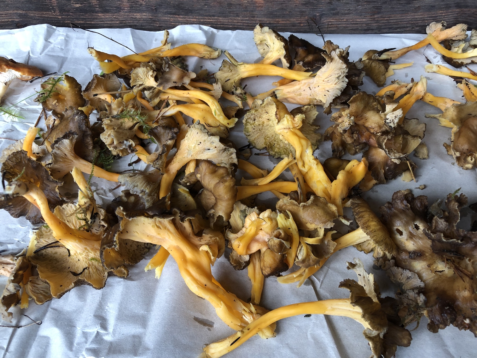 2) Gelbe Kraterelle, Goldstieliger Pfifferling oder Leistling Craterellus lutescens Cantharellus lutescens, von denen konnte ich recht viele sammeln, sie ergaben ein gutes Pilzgericht.