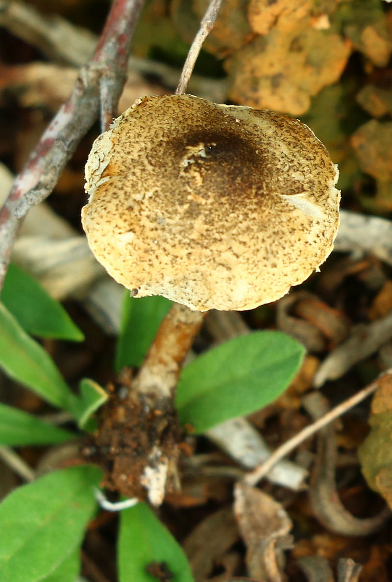 I think that could be Lepiota elaiopyhylla, but I'm not sure if the spores fit.
