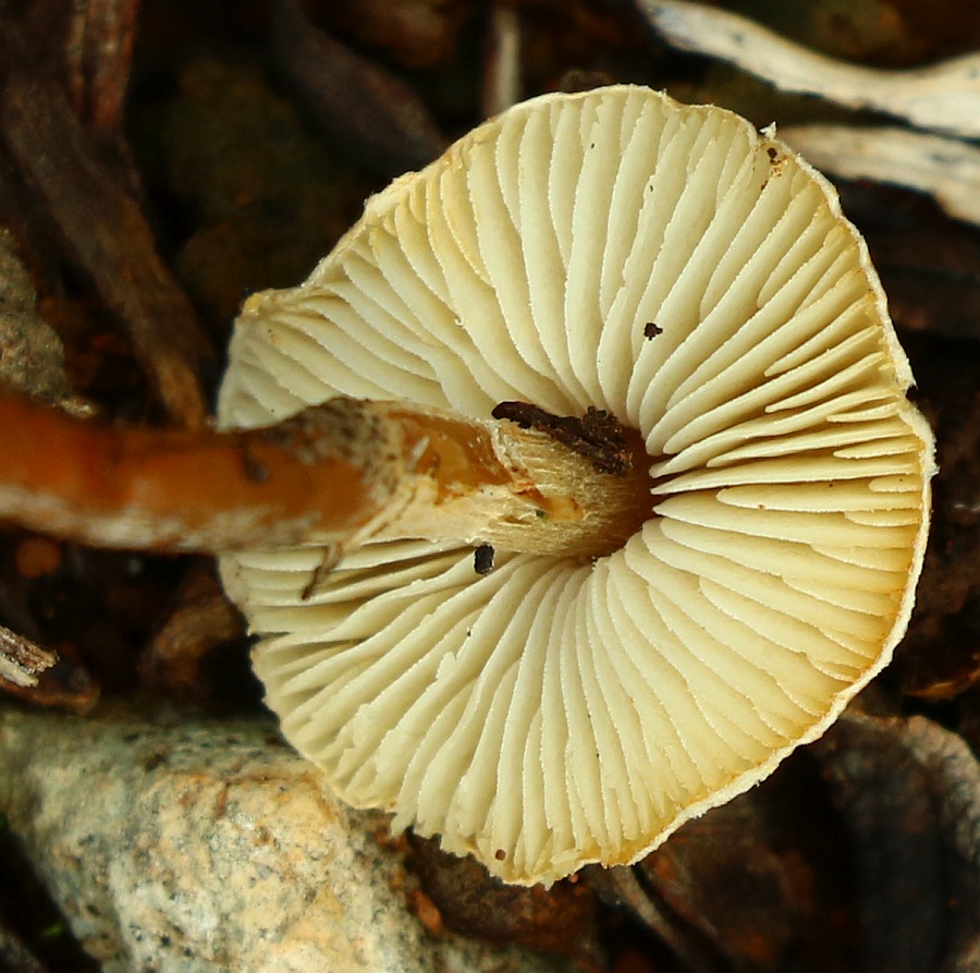 Here is another unidentified small pale mushroom with contrasting scales on the pileus and dark punctations on the stipe. I think there was/is a ring but got damaged or eroded away. Pileipellis a trichoderm. Clamp junctions were observed. In a phrygana associated with Cistus monspeliensi (or less likely Thymus capitatus). I was guessing about Lepiota, but which species I don't know. In Crete, Lozoides and allies records a number of fungi associated with Cistus, amongst which there is Lepiota locquinii, L. farinolens and L. sublaevigata.