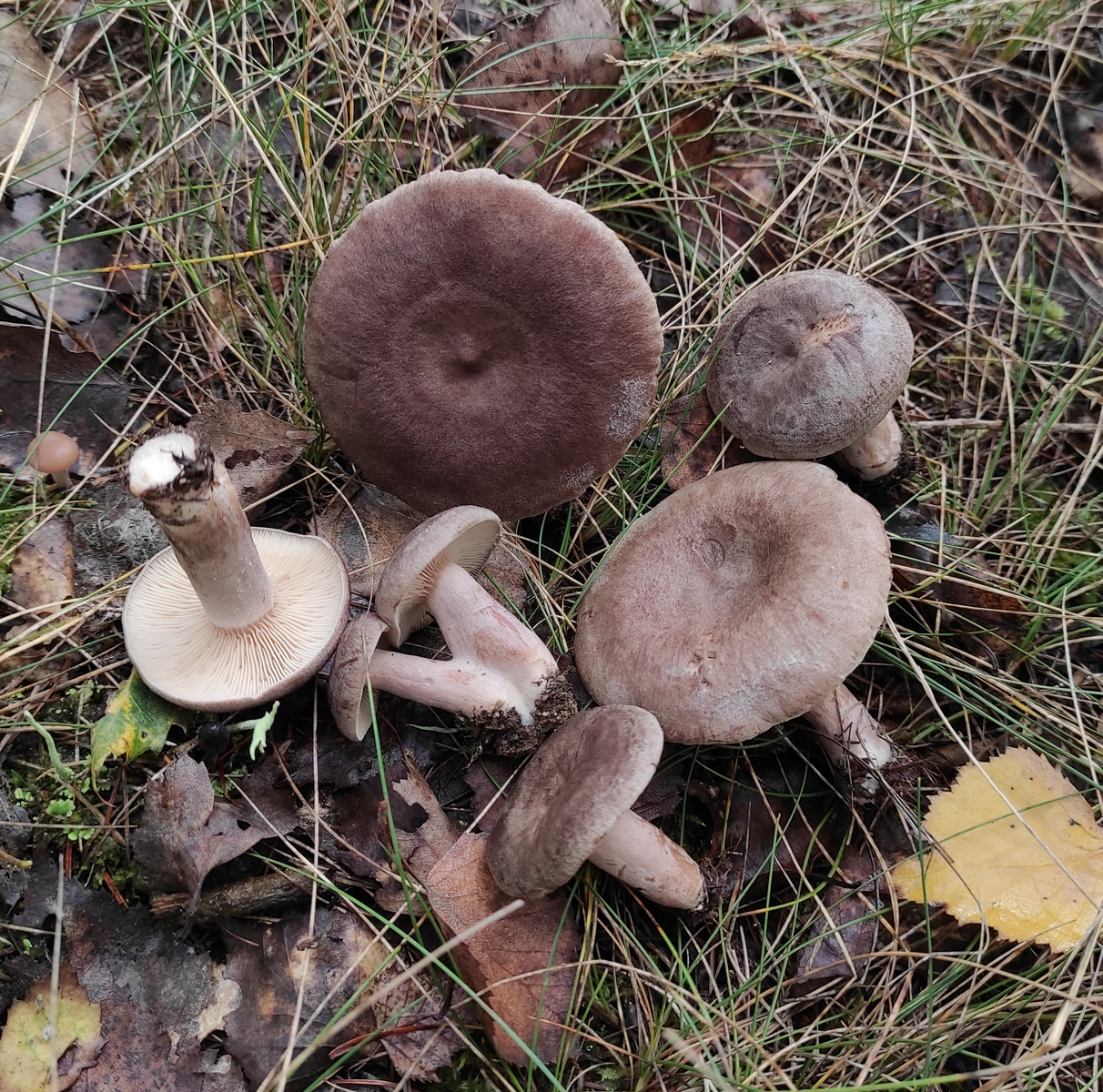 Die hier habe ich bisher als L. mammosus angesprochen, hauptsächlich wegen der dunklen Färbung. Der Kokos-Geruch ist meines Erachtens nach auch deutlich schwächer ausgeprägt als bei L. glyciosmus. Gestern bei der Runde waren die Pilze verregnet und man musste an alten Exemplaren schnuppern um etwas wahrzunehmen. Alternativ kann man sie antrocknen lassen, dann wird der Geruch etwas stärker.