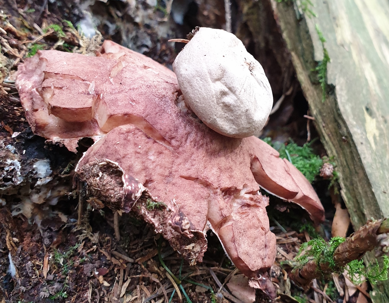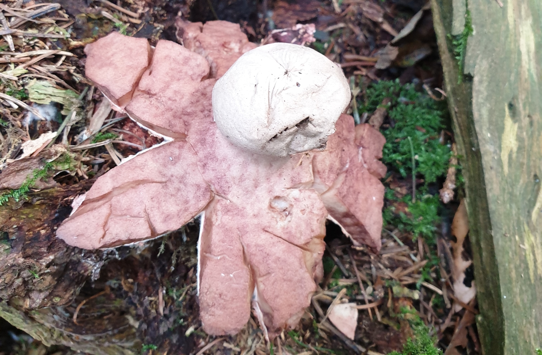 Könnte es sich hier um den Rötenden Erdstern handeln? Die Farbe war jedenfalls eindeutig rosarot ![]()