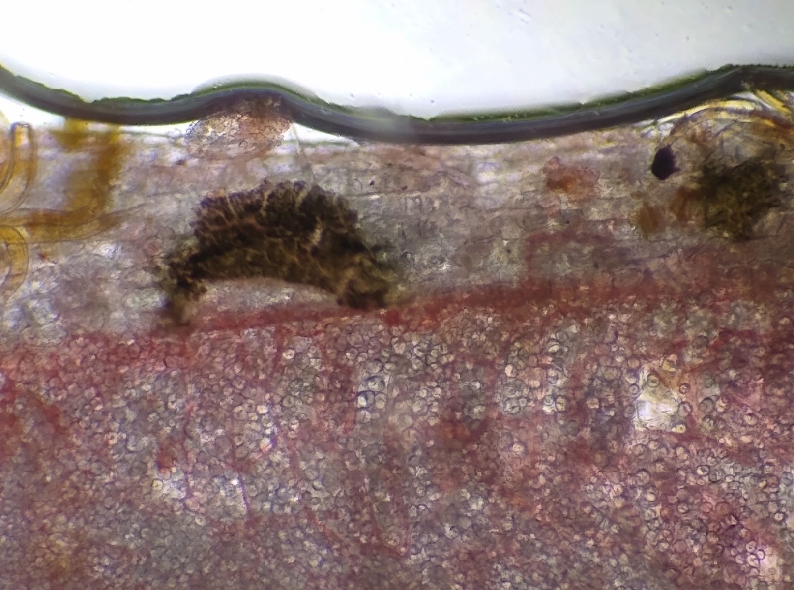 Im Mikroskop meine ich Pflanzenzellen zu erkennen, aber ist hier vielleicht doch ein Pilz mit im Spiel?