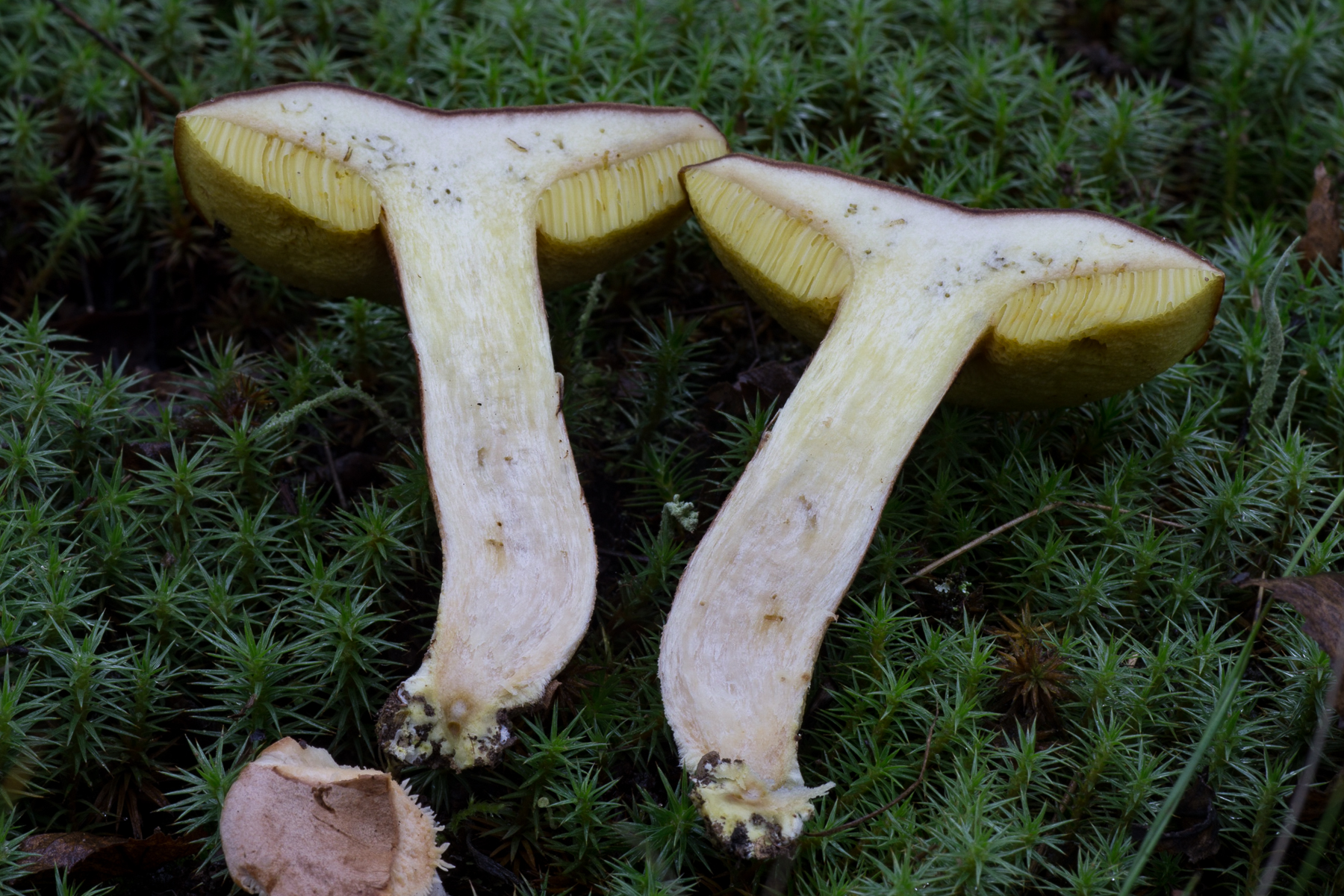 Die Hutfarbe wäre nicht so sehr passend und der Stiel war jetzt nicht tief wurzelnd der Rest könnte aber vlt. passen. Aber die wahrscheinlichste Option wird schon X. ferrugineus sein auch wenn ich das Habitat etwas untypisch finde, aber der soll ja selten auch mal an Birke gehen, die ich vor Ort nicht ausschließen kann als Partner.