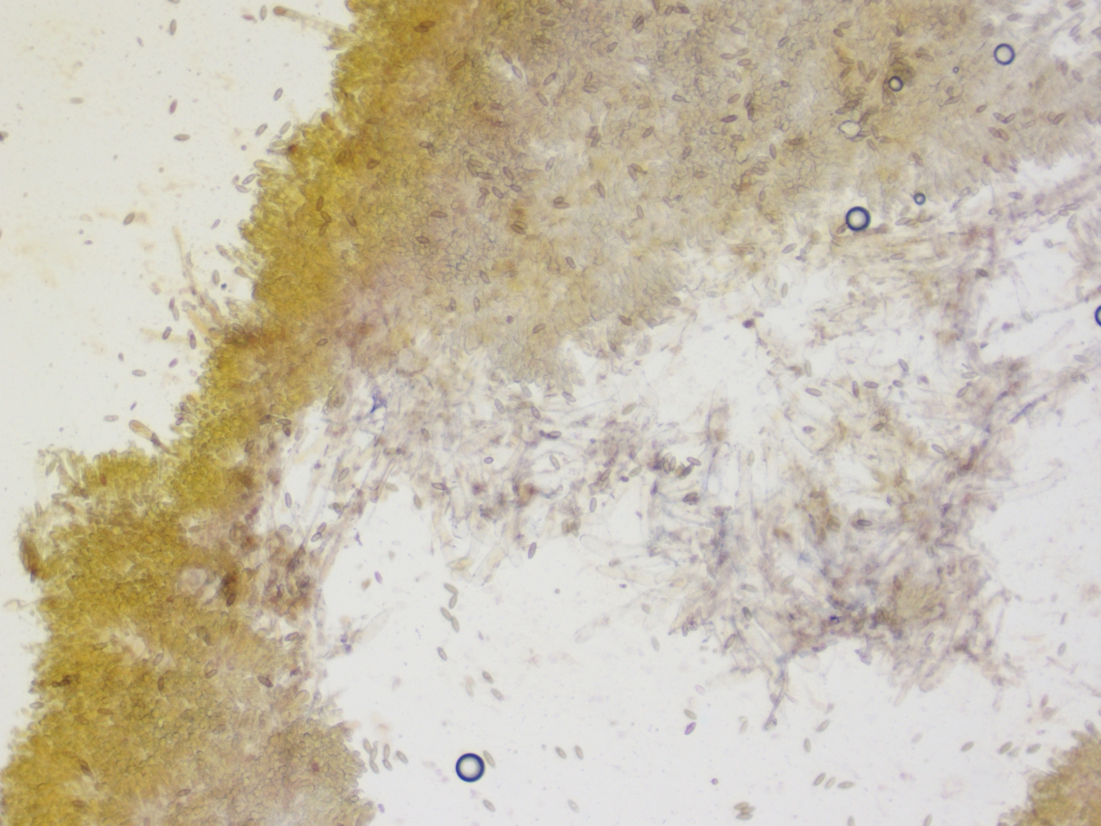 Hier noch ein Bild von der amyloiden Lamellentrama und einer dickwandigen Zystide. Die starke Amyloidität sieht man aber sogar schon makroskopisch schon ganz gut.