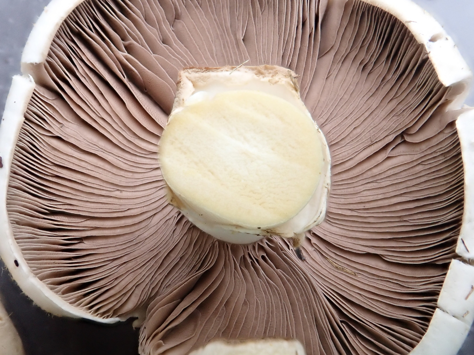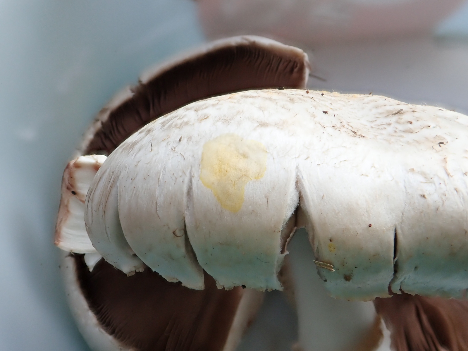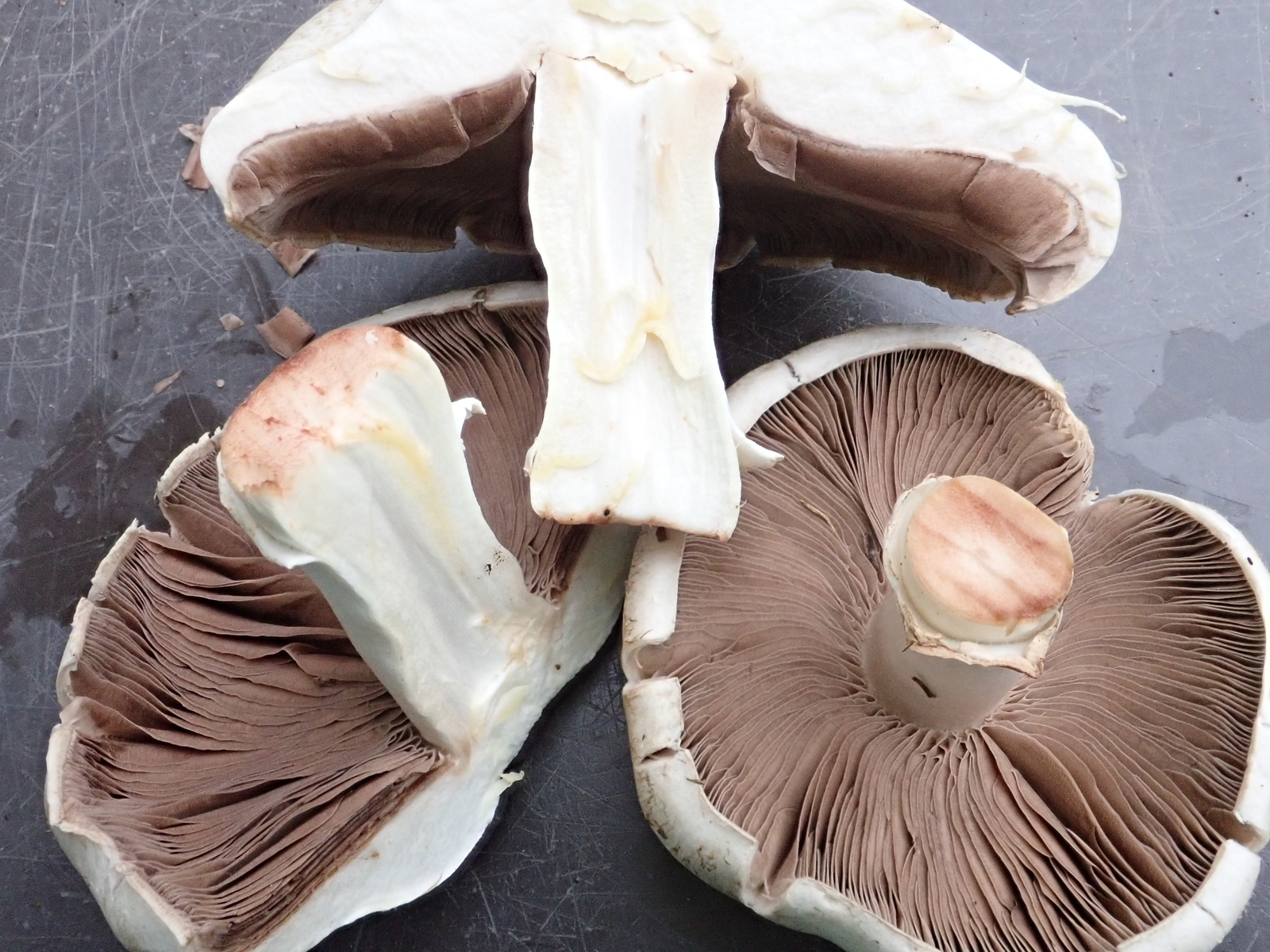 Zuhause bemerkte ich beim Abschneiden der Stielbasis ein Gilben derselben. Das machte mich Stutzig: Upps… doch kein Wiesenchampignon!