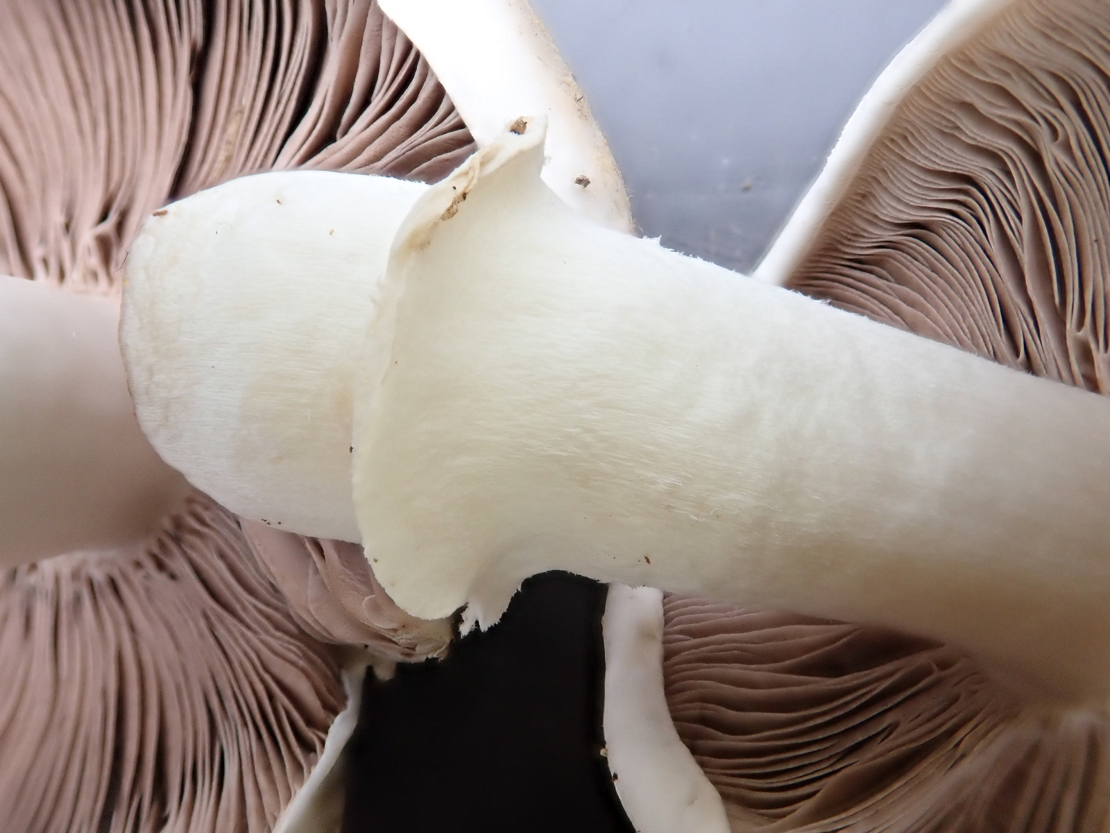 Der Ring war schmal, hängend, zunächst dicklich, später flüchtig, der Stiel hatte keine Knolle, war zylindrisch.