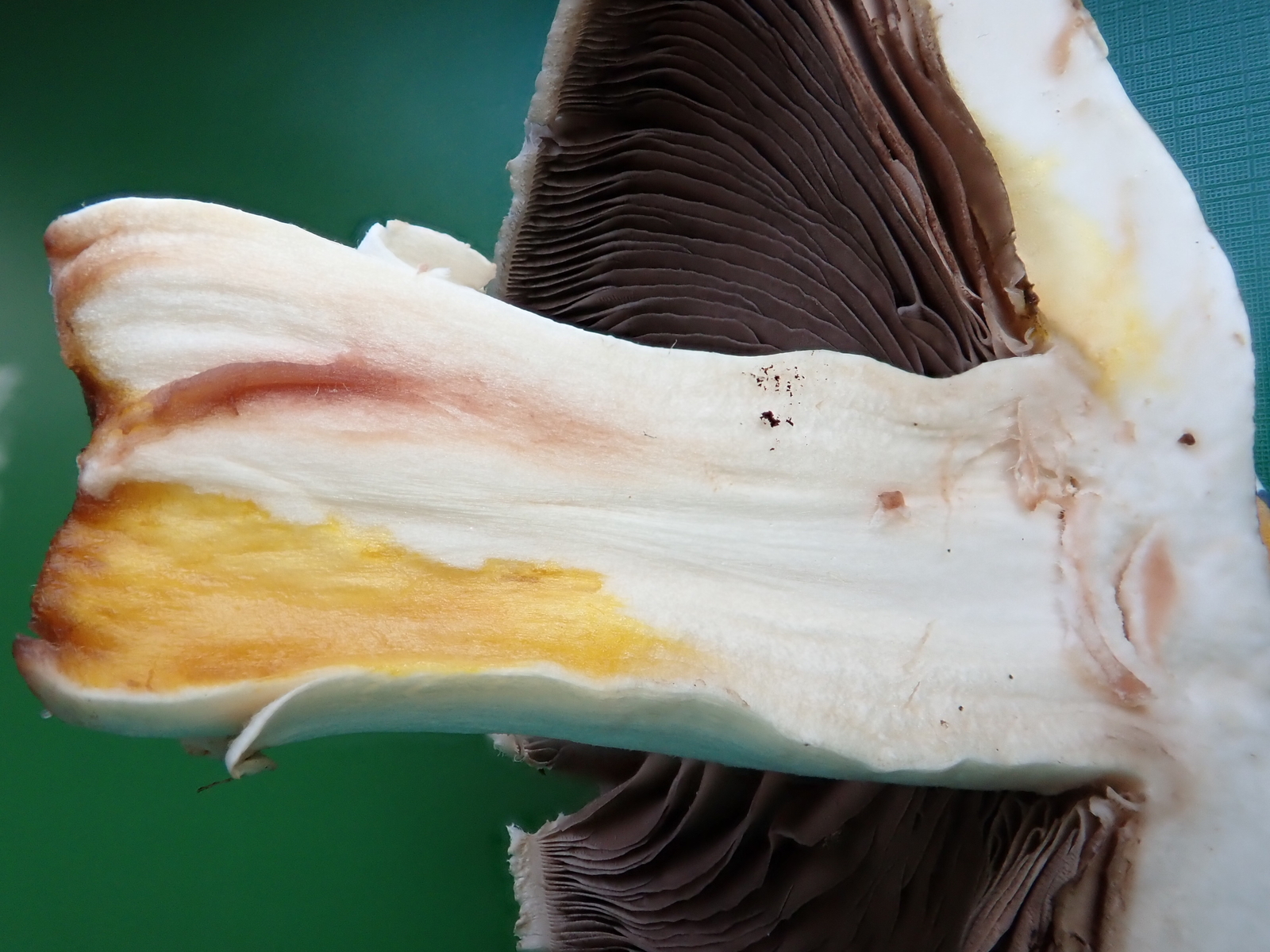 Mit KOH reagiert das Fleisch vor allem im Stiel stark gelb, auf der Huthaut nur wenig gelblich.