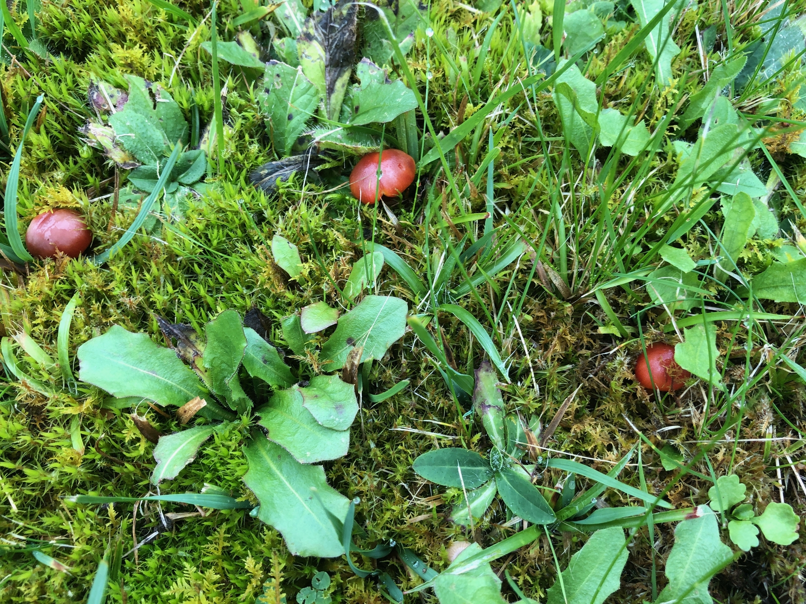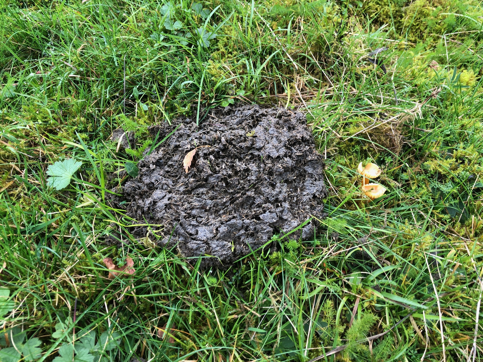 7 Reste von Zähen Saftlingen - Hygrocybe laeta neben tierischen Hinterlassenschaften. Und das war es schon auf der Weide. Dort waren letztes Jahr deutlich mehr Pilze, auch seltene Arten zu finden. Allerdings waren die Kühe auch nur weinige Wochen dort, da infolge der Dürre kein Gras wuchs.